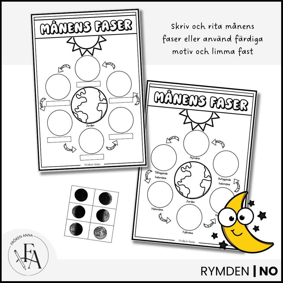 Detta material hjälper eleverna att förstå månens olika faser genom både arbete, observation och repetition. Materialet passar perfekt när ni arbetar med rymden i NO och vill kombinera fakta med praktiska moment.