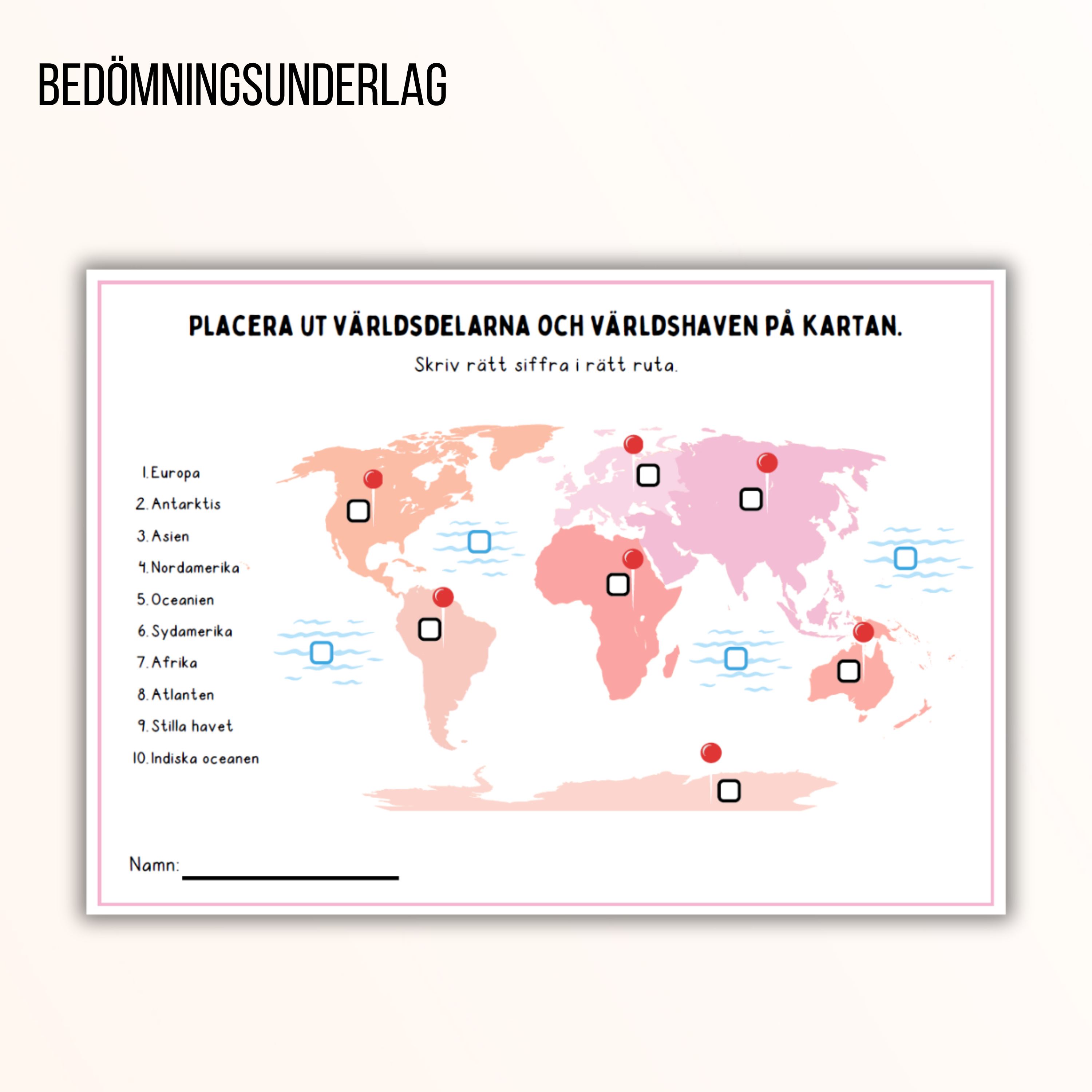- Bedömningsunderlag – placera ut världsdelarna och världshaven