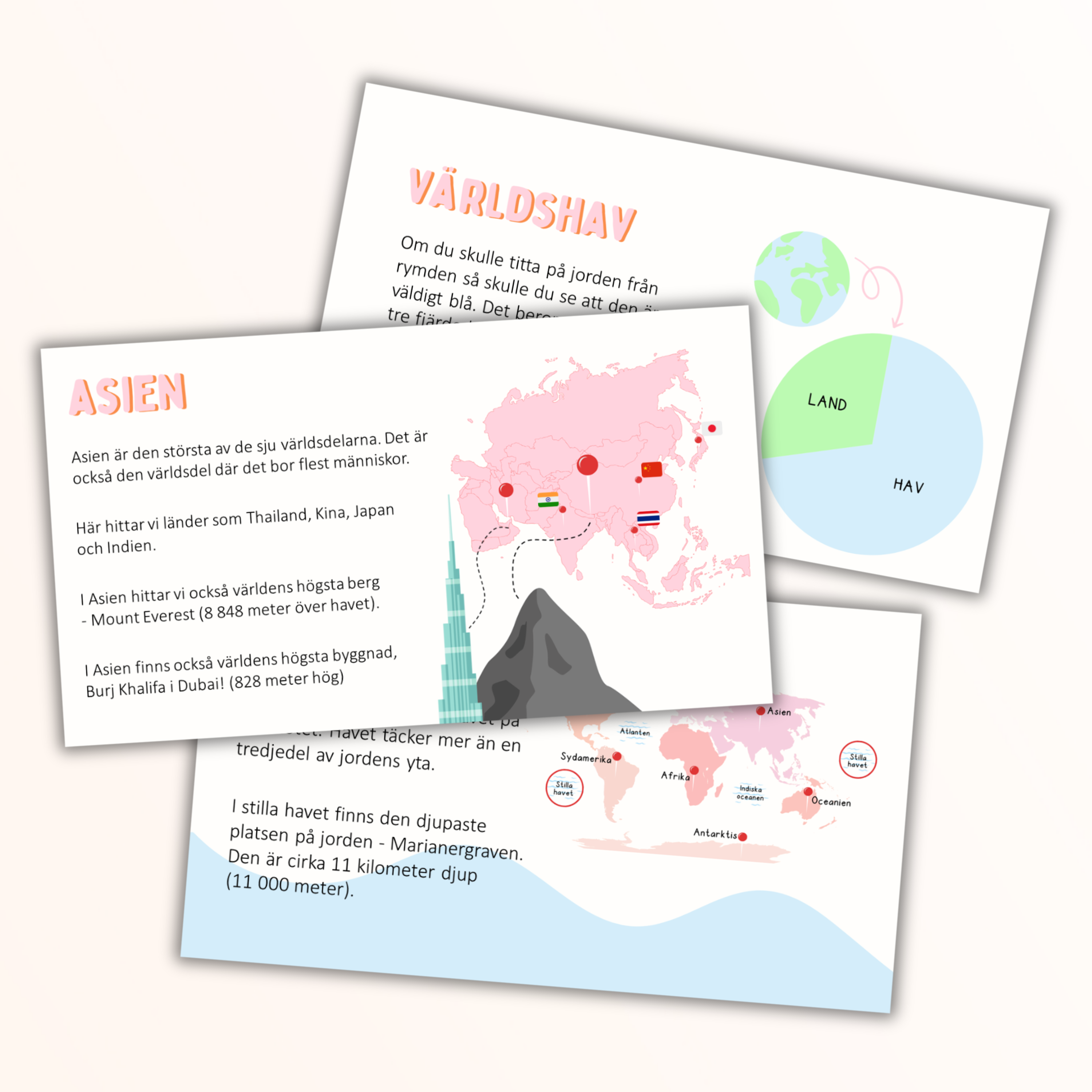 Materialpaket med resetema! Eleverna får åka ut på en resa och besöka alla sju världsdelar och resa över de tre världshaven.