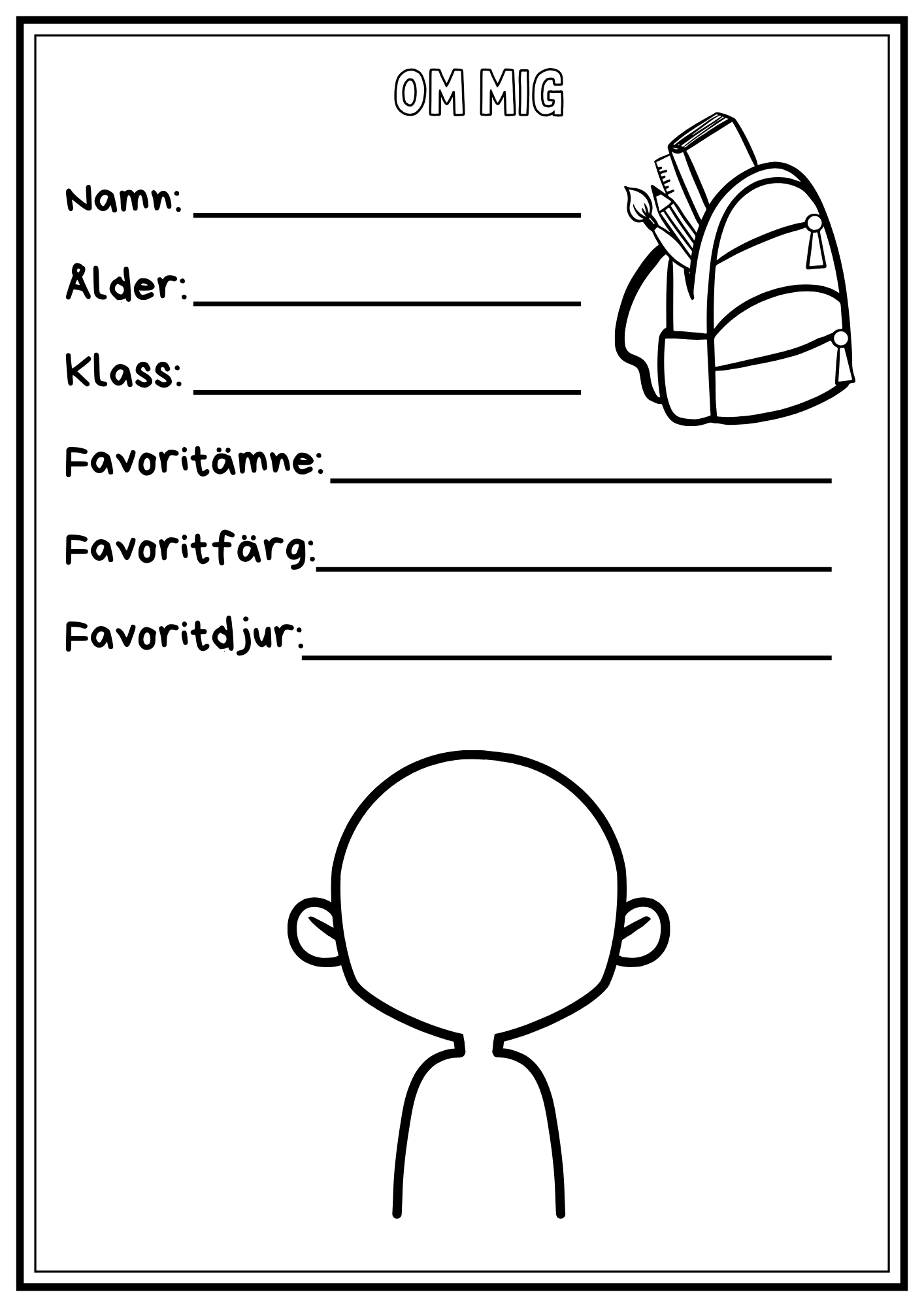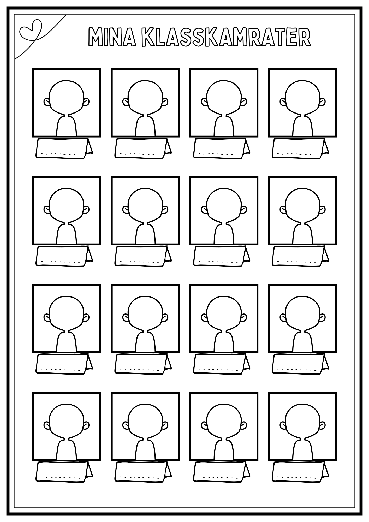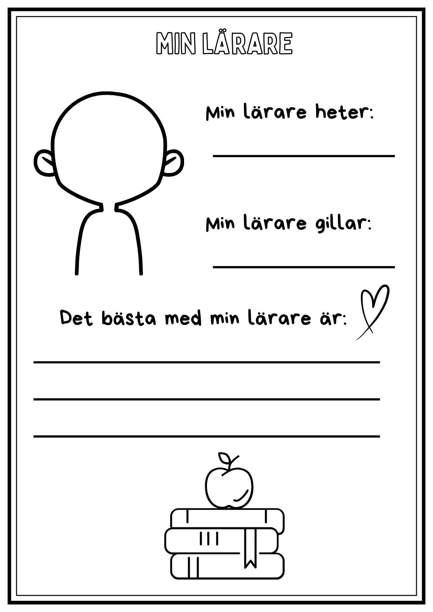 Minnesbok från läsåret. Eleverna skriver om sin skola, sin klass, lärare, saker de lärt sig osv. Plocka ut delar som passar eller använd allt! Totalt 18 sidor plus framsida. Framsidan är anpassad för förskoleklass – årskurs 6.