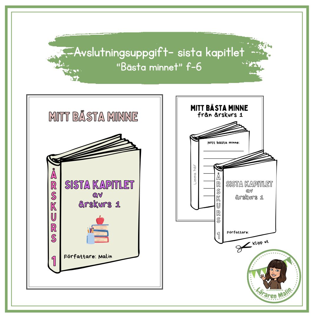 Avsluta läsåret med denna uppgift. ”Sista kapitlet i årskurs…” Låt eleverna skriva om sitt bästa minne från läsåret. Finns för f-6.