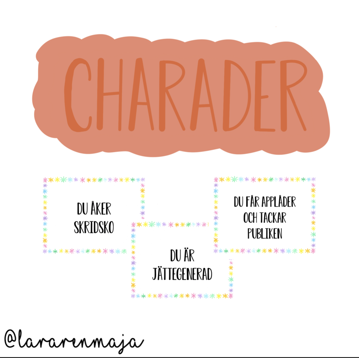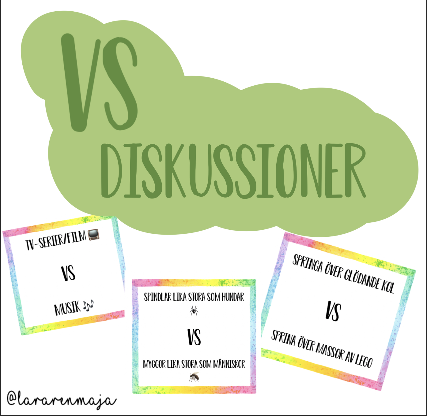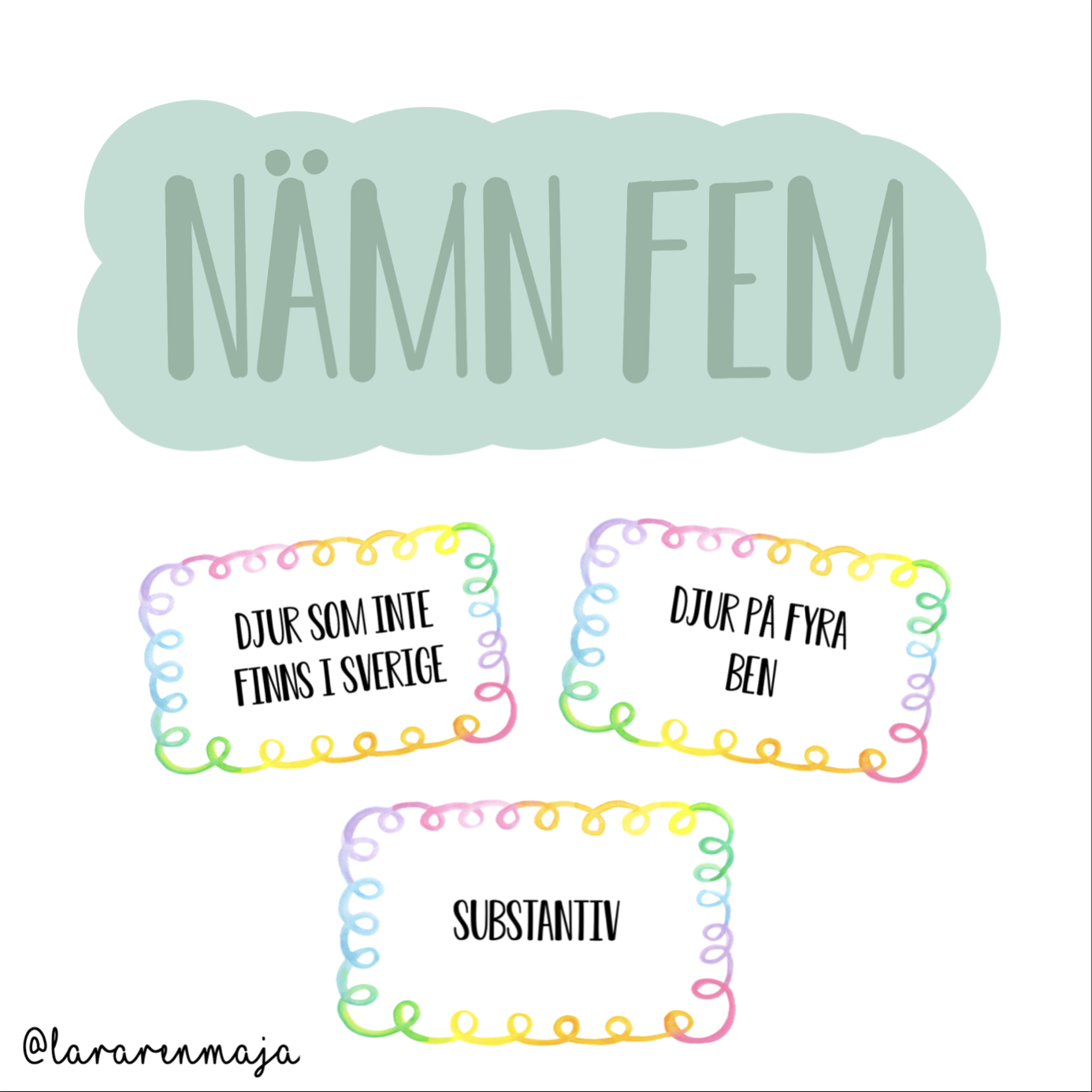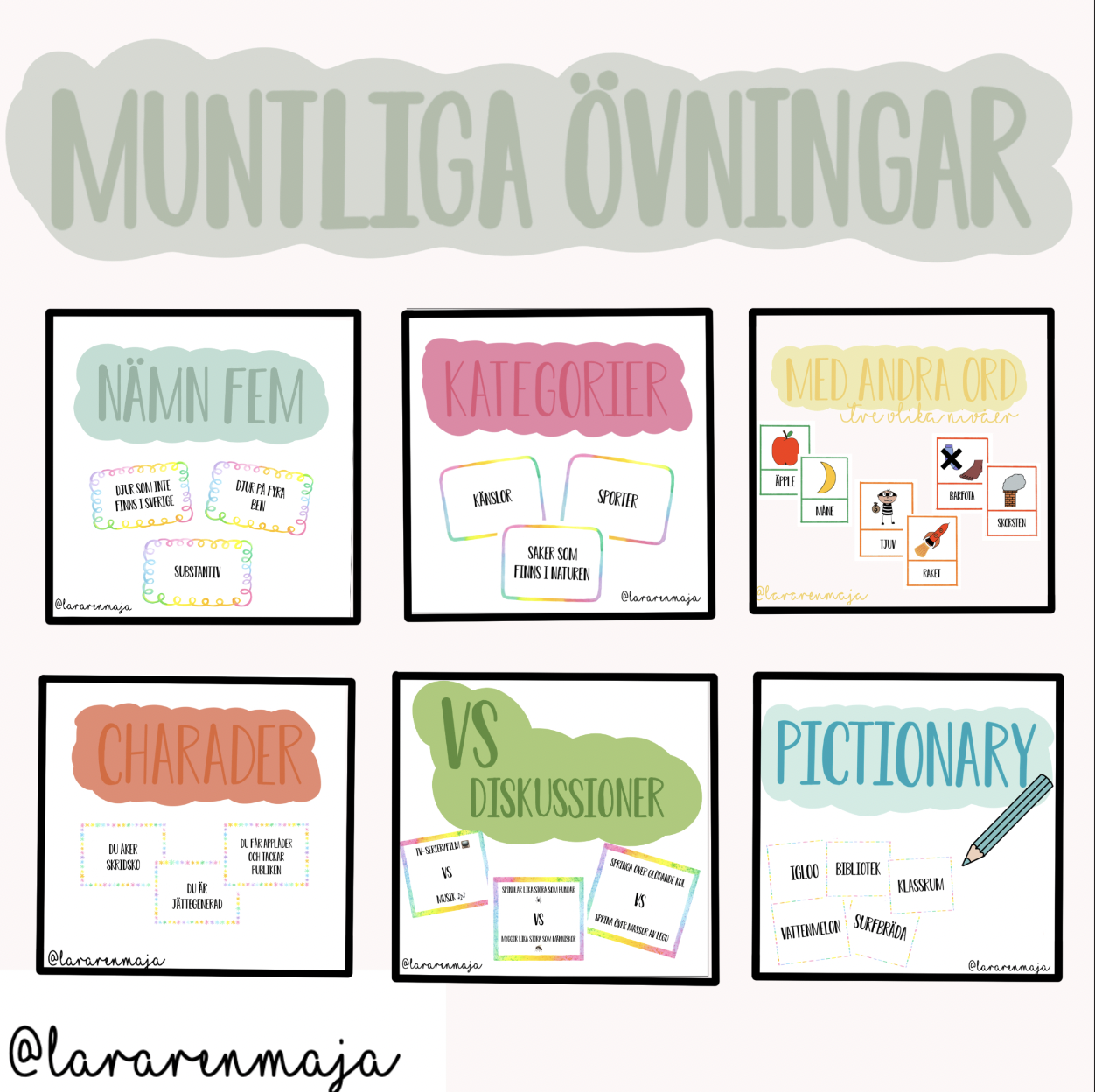 Ett paket med olika roliga muntliga övningar man kan köra i helklass eller i smågrupper/stationer. Sex olika lekar/övningar som alla har fokus på samtal, den muntliga förmågan och resonemang. Det ingår även regler för varje övning som kan användas antingen för pedagogen eller som är perfekt att lägga ut om man jobbar med stationer.