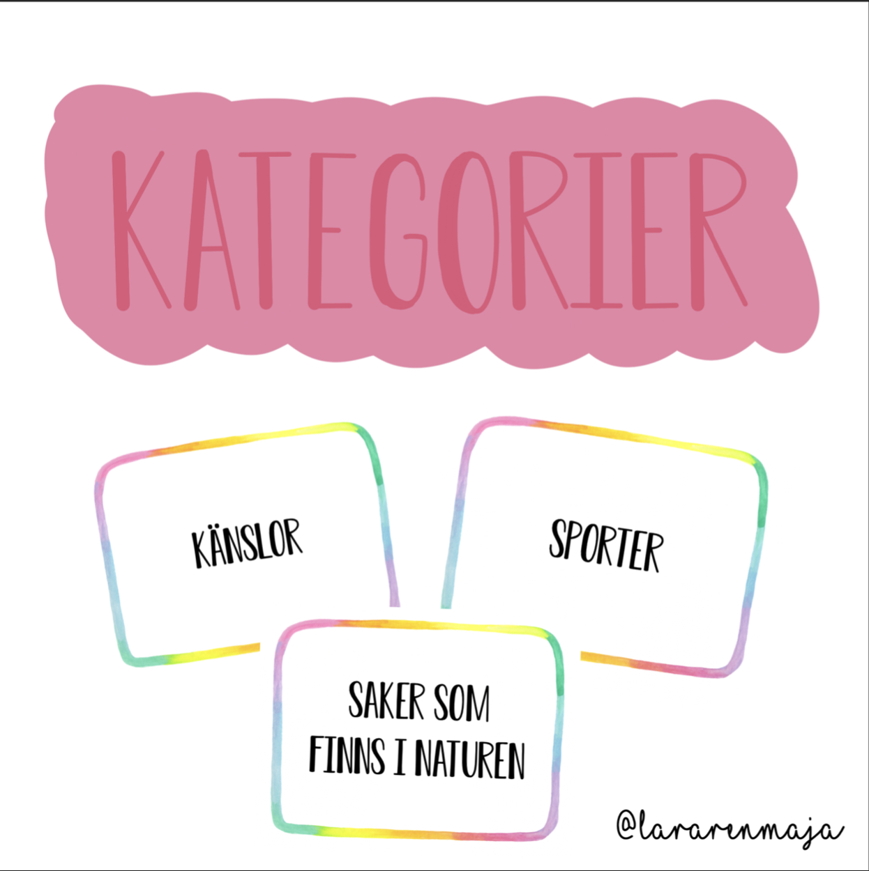 Allt är gjort som små kort som man kan skriva ut och laminera.