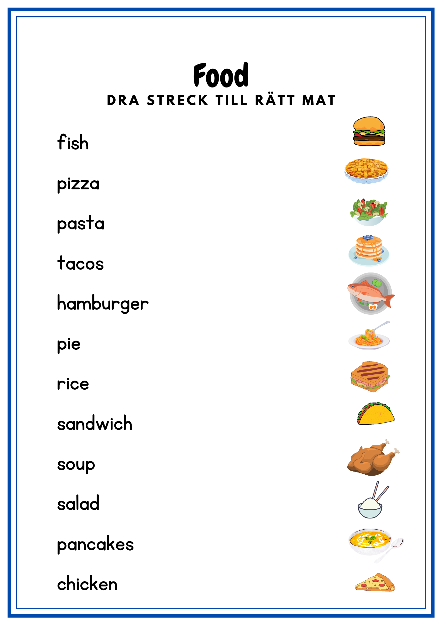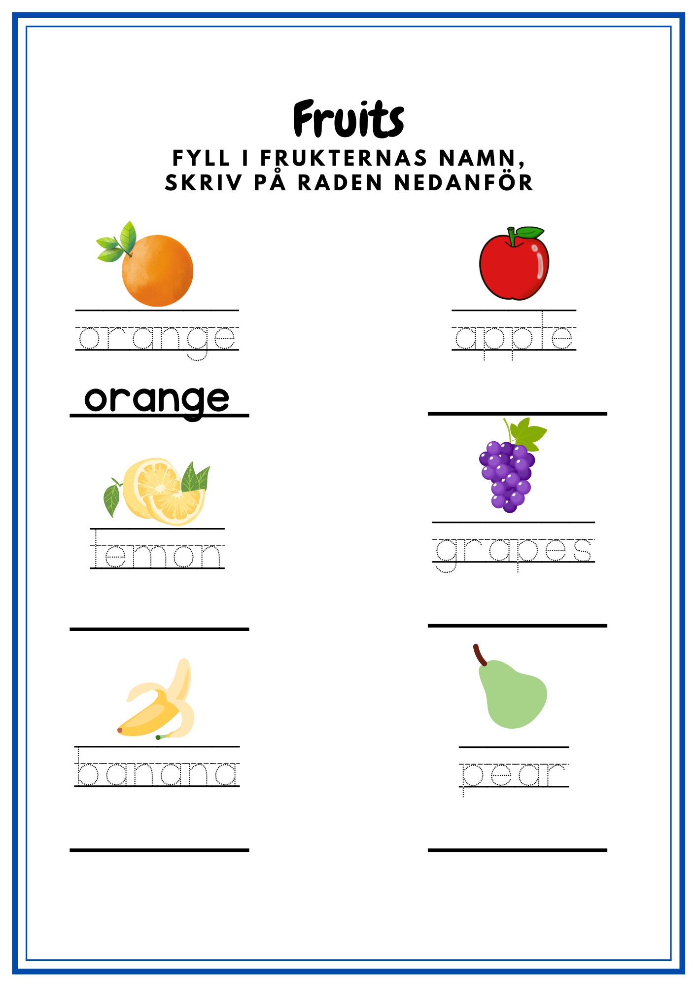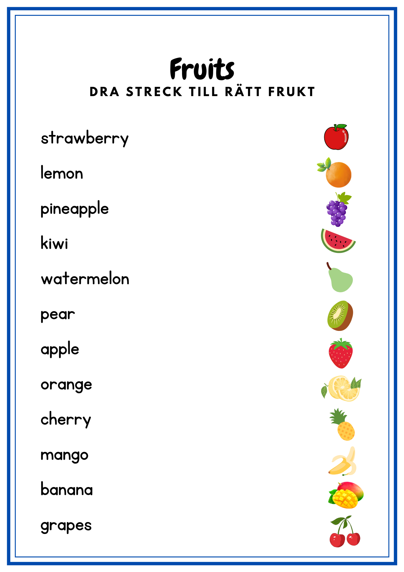 My first english 2- häfte som tränar frukt, mat, dryck & aktiviteter