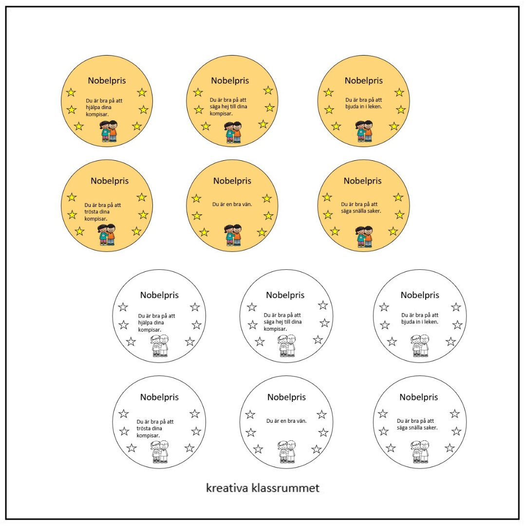 Dela ut medaljer till era elever. För visst är de stjärnor?! Vi har skapat medaljer på temat bra kompis.