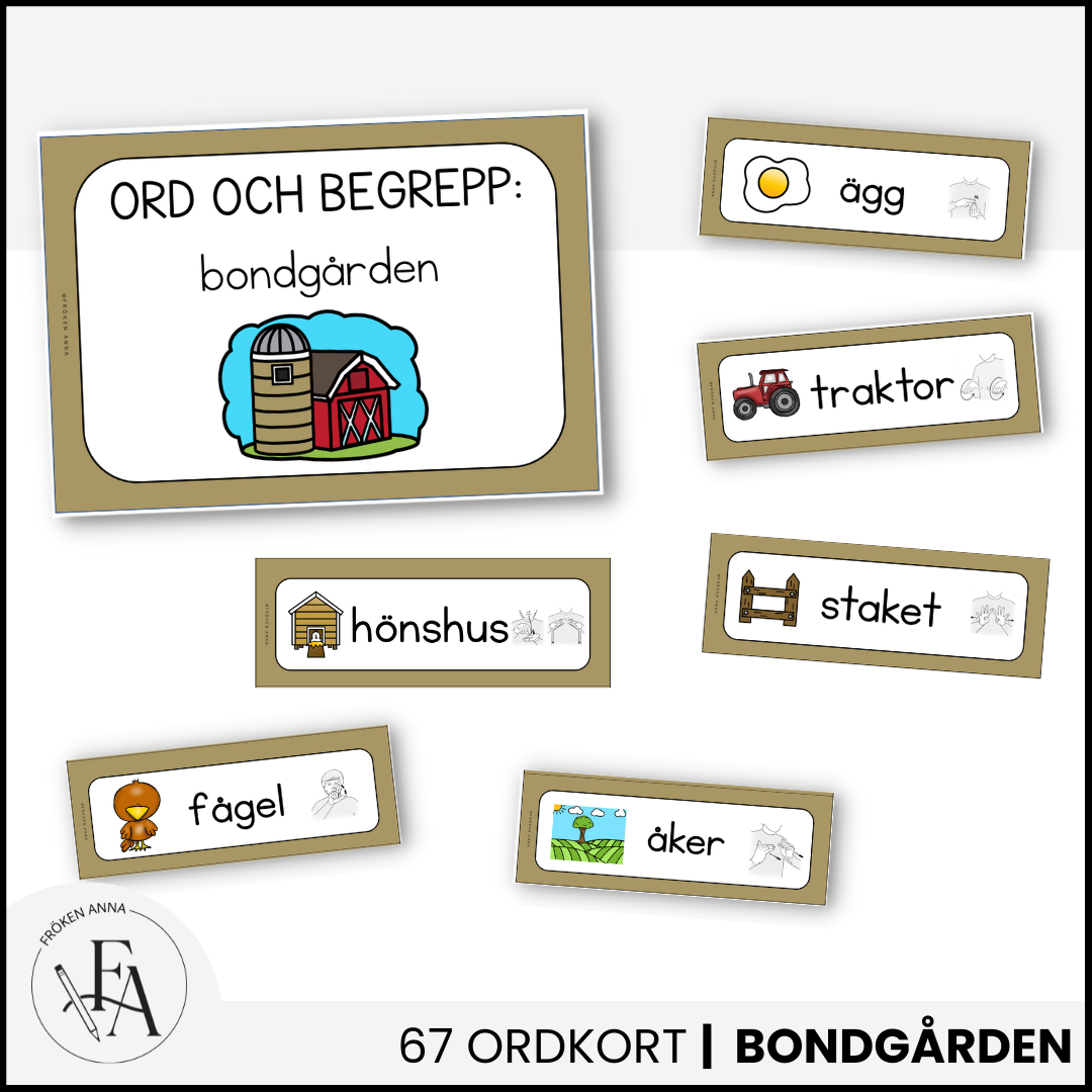 Ett gediget arbetshäfte med VÖL-schema, läsförståelse i nivåer, lär om bonden, mjölkens väg,djuren på bondgården, vem ger oss vad? Lär och lär om hönan och grisen och djurens familjer, skriv själv (7 olika djur) samt prick-till-prick.¨