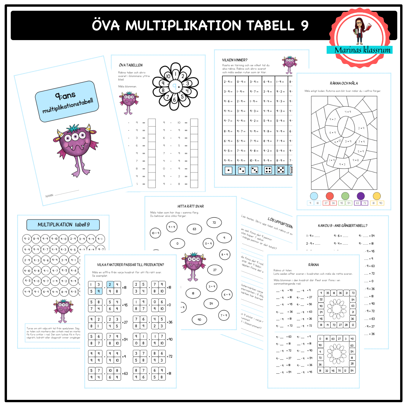 Ett arbetshäfte där eleverna får räkna multiplikation på flera olika lekfulla sätt för att lära in och automatisera multiplikationstabellerna.