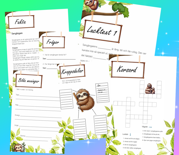 Varje häfte inleds med en faktatext om djuret, följt av läsförståelsefrågor på raderna. Därefter befästs faktakunskaperna genom två stycken lucktexter, övning i att identifiera kroppsdelar och signalement, i form av ett korsord och genom att skriva meningar med några av textens nyckelord.