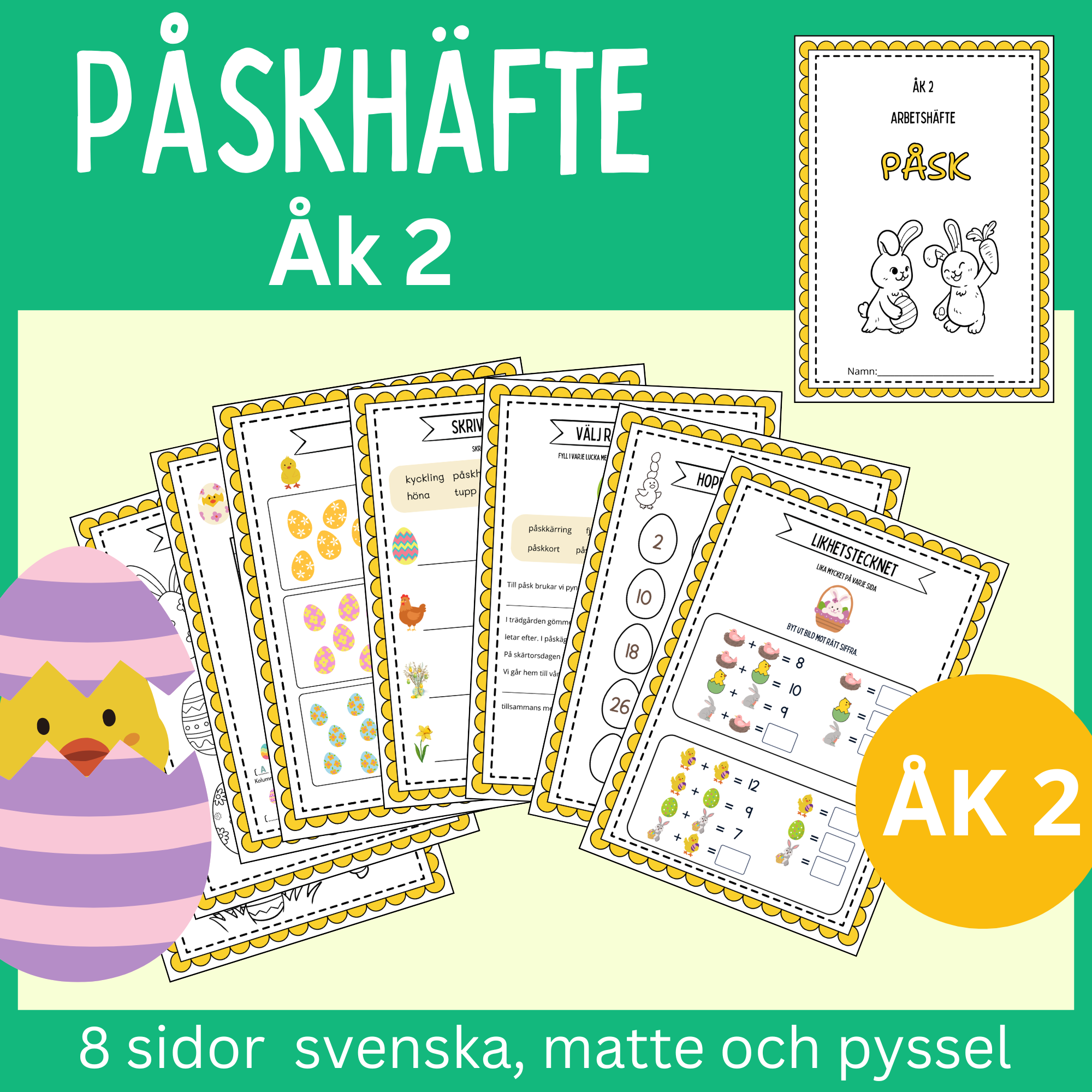 Påsk-häfte åk 2, 8 sidor svenska, matte och pyssel
