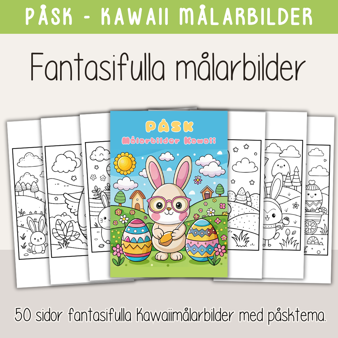 Kawaii betyder ”gullig” eller ”söt” på japanska och dessa målarbilder med påsk- och kawaiitema är supersöta! 50 sidor att skriva ut som och om igen. ♥ Levereras som en PDF-fil