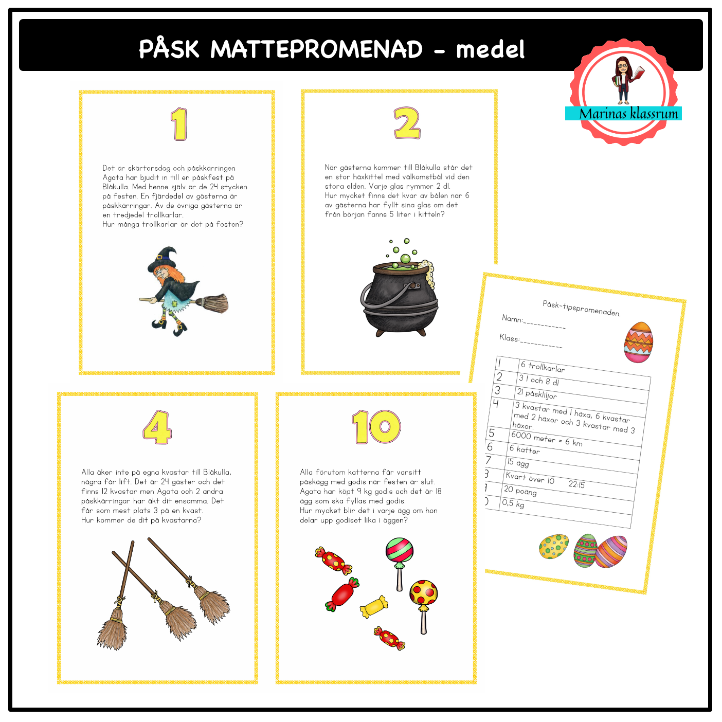 En tipspromenad med påsk-tema som tränar läsförståelse och matematik.
