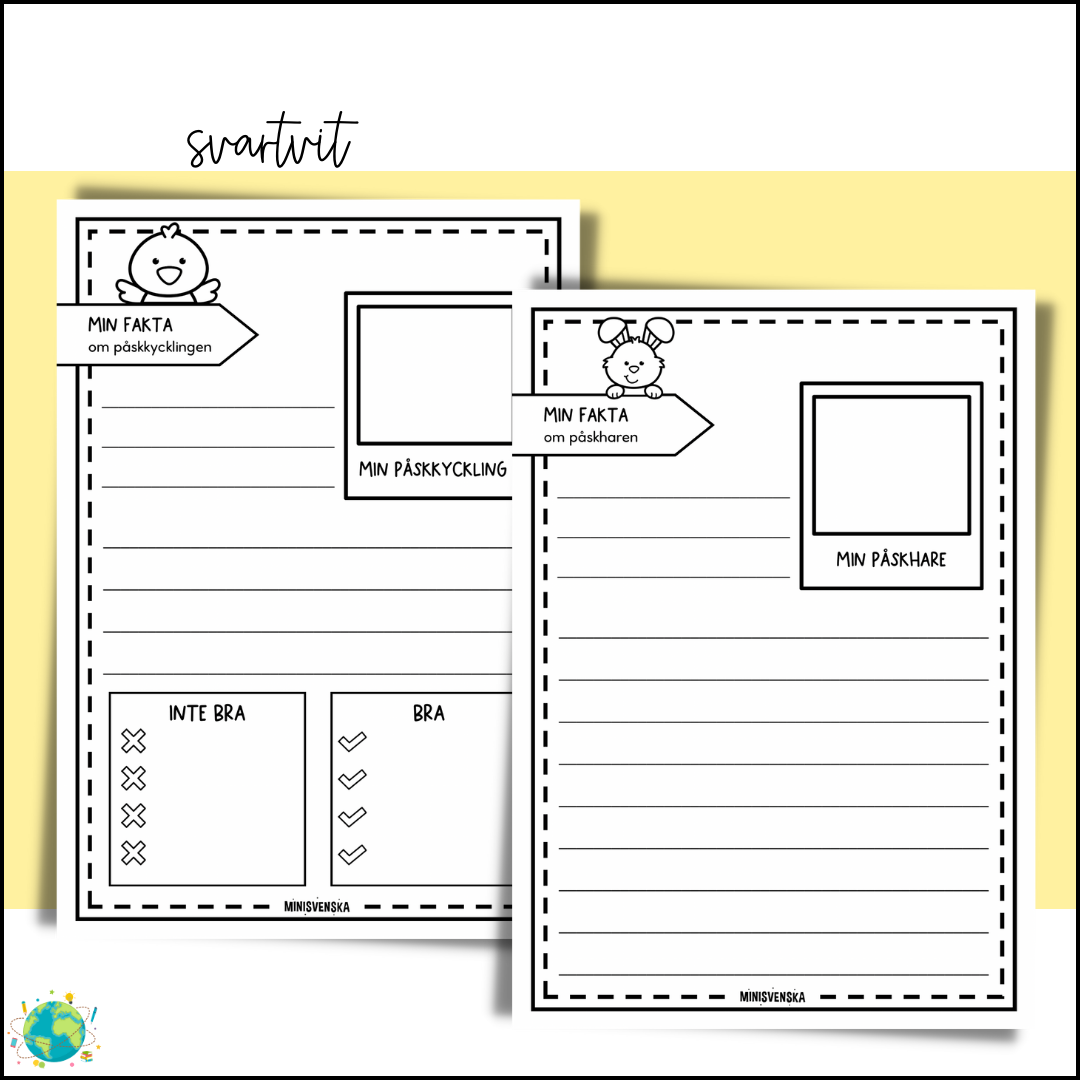 - Rita och skriv fakta om ”Min påskhare” och ”Min påskkyckling”.