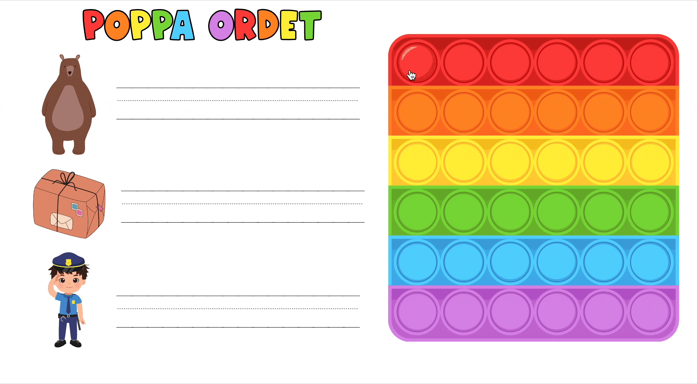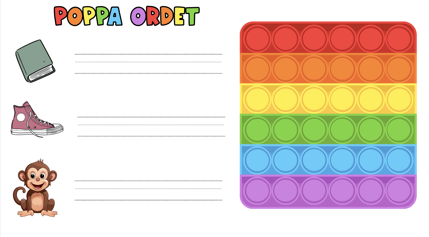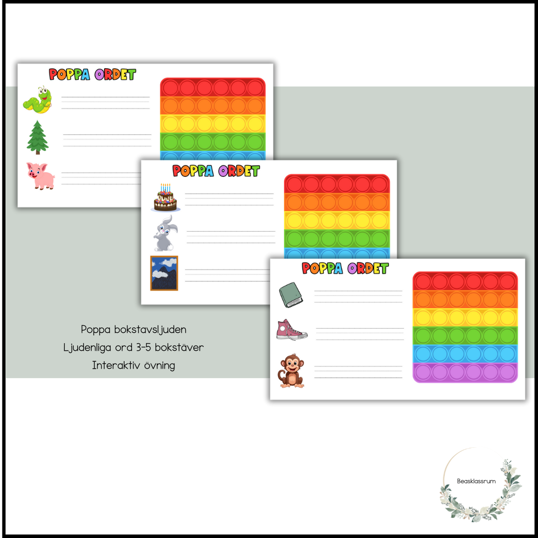 Material där eleverna tränar bokstavsljud genom att poppa ljuden på en pop-it.