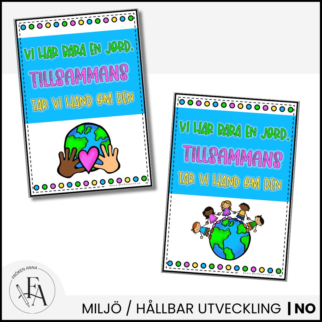 Två olika miljöposters som påminnelse om att vi måste ta hand om jorden tillsammans.