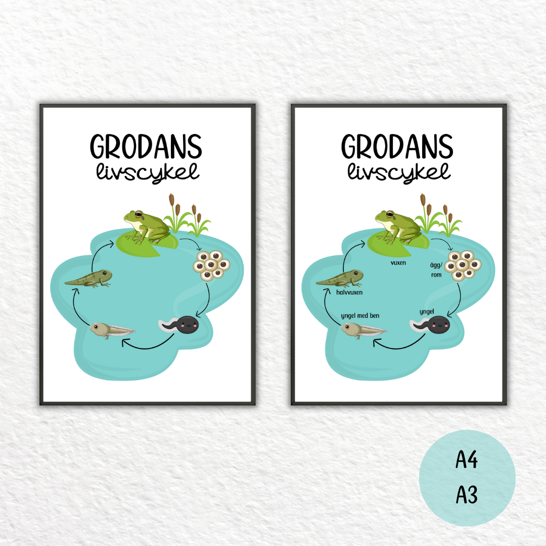 Dekorera ditt klassrum med Grodans Livscykel. A4 A3 PDF: High quality