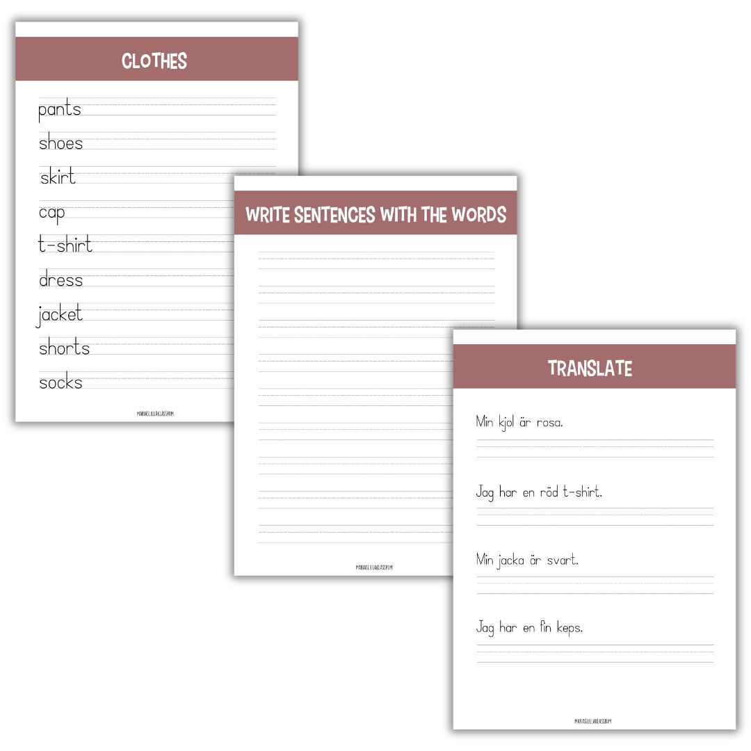 Träna engelska ord Innehåll: 1. Framsida. 2. Nio ord att stava. 3. Skriv meningar med orden. 4. Översätt till engelska. 5. Ordgömma. 6. Nio engelska ord att laminera och klippa ut. 7. Nio svenska ord att laminera och klippa ut.     8. Läs och träna på orden. Kan användas som bokmärke eller ta med hem och träna.