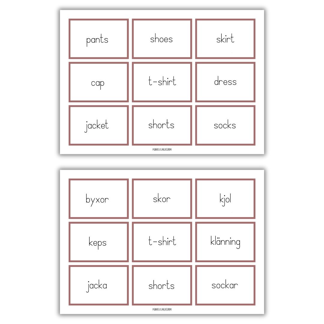6. Nio engelska ord att laminera och klippa ut.