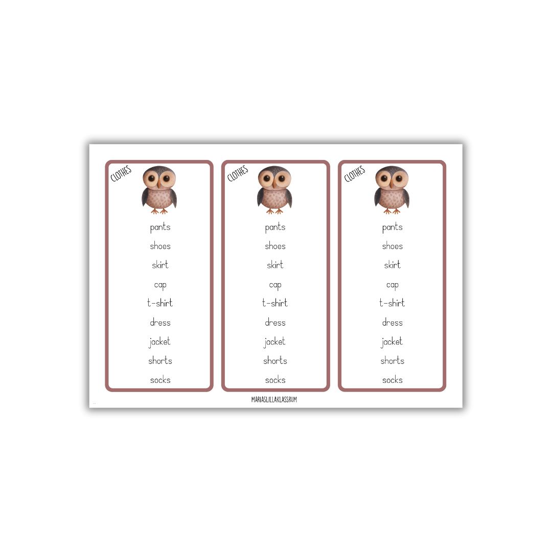 8. Läs och träna på orden. Kan användas som bokmärke eller ta med hem och träna.