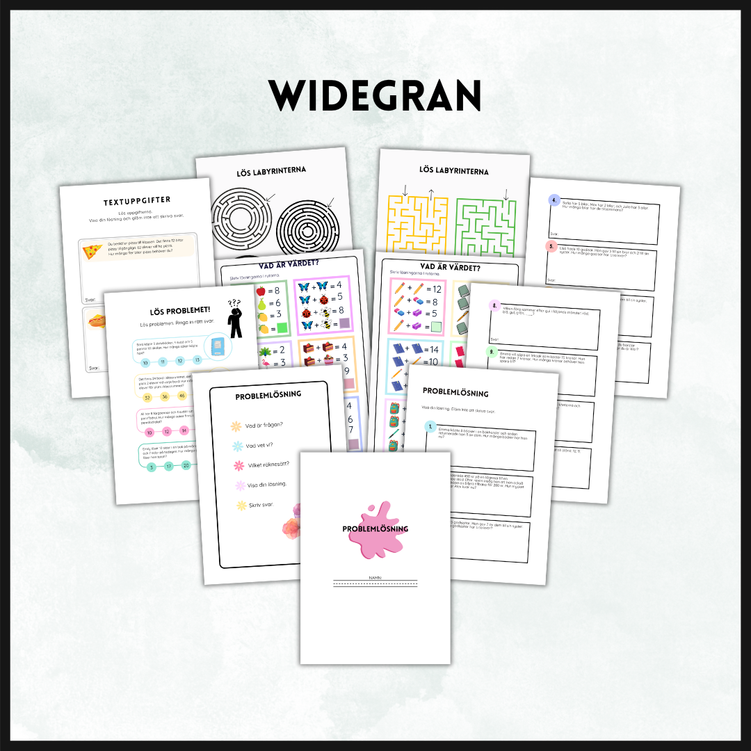 11 blandade problemlösningsuppgifter för lågstadiet.