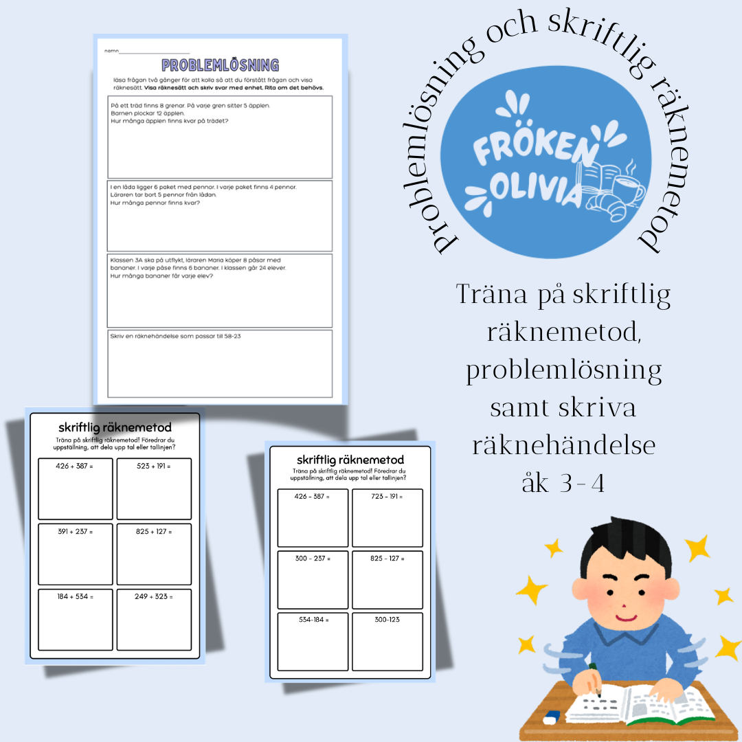 Här kan eleverna träna på skriftlig räknemetoder, problemlösning samt att skriva egen räknehändelse.