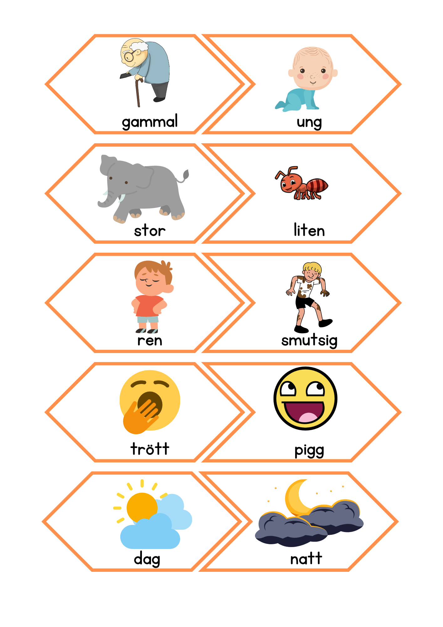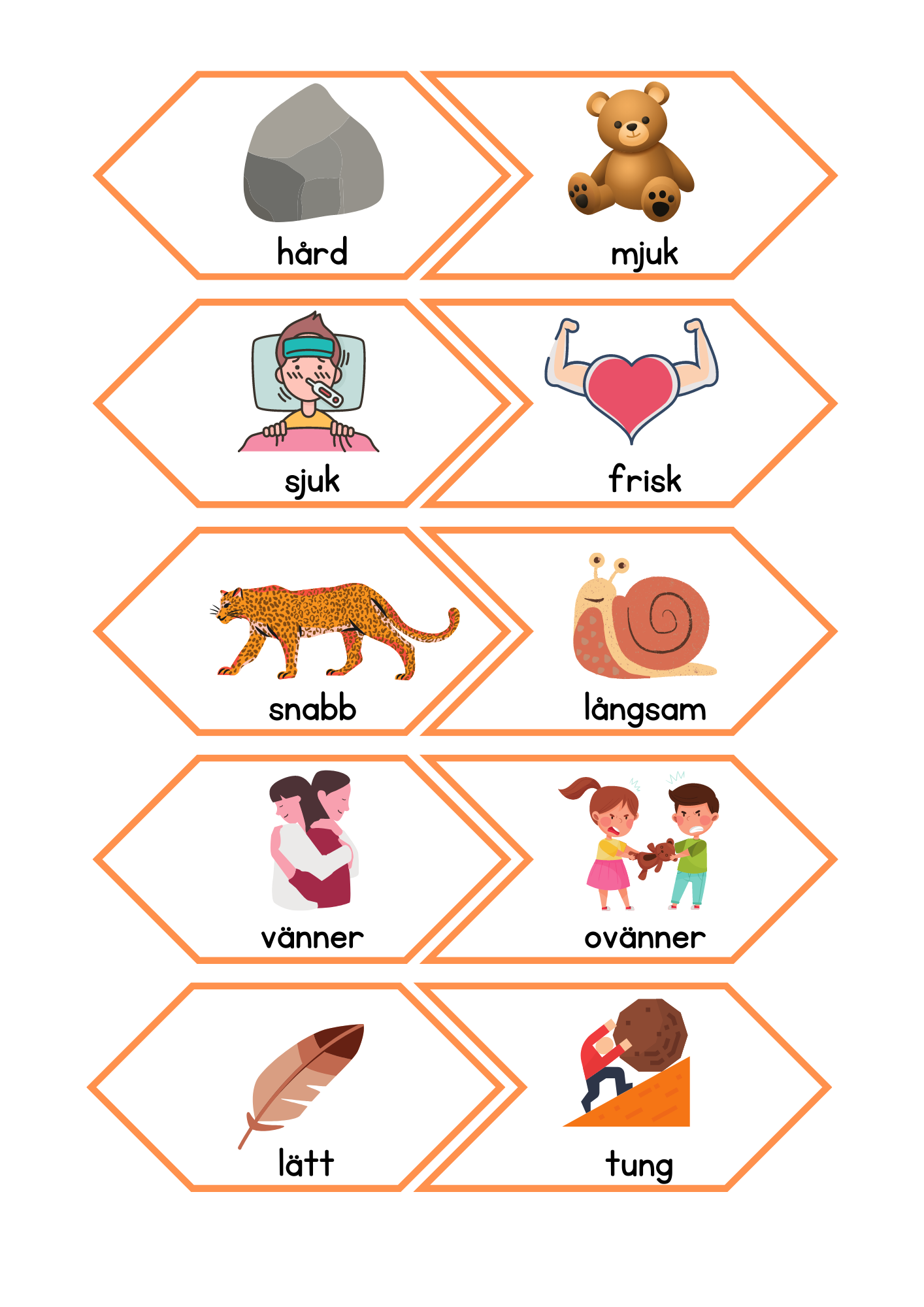 Pussel/hör vi ihop med motsatsord. 30 stycken par totalt.