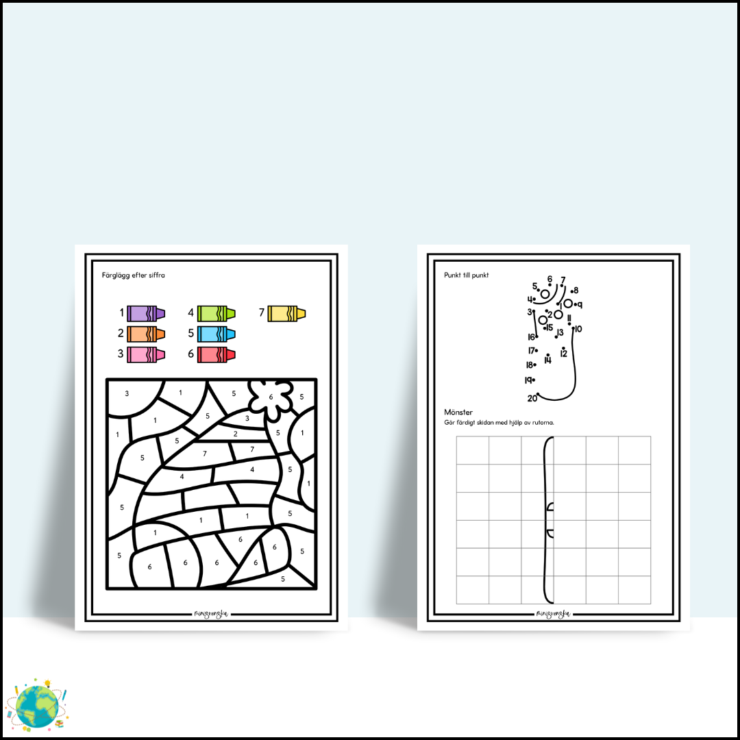 Ett vinterinspirerat matematikmaterial där eleverna får träna grundläggande matematik på ett lekfullt och tydligt sätt, med vintersport som röd tråd. Materialet passar bra för elever som behöver träna antal, siffror och enkel problemlösning, samtidigt som bilderna skapar motivation och igenkänning. Innehåll I materialet får eleverna arbeta med: räkna och skriva tal räkna hur många färglägg efter siffra para ihop antal och tal punkt till punkt enkla mönster problemlösning Uppgifterna har varierande svårighetsgrad och kan användas både gemensamt och individuellt. Passar för: F–2 (även anpassningsbart för åk 3) helklass, smågrupp eller enskilt arbete morgonuppgifter, stationer eller temaarbete Format: PDF A4 30 sidor Ladda ner skriv ut och använd direkt!