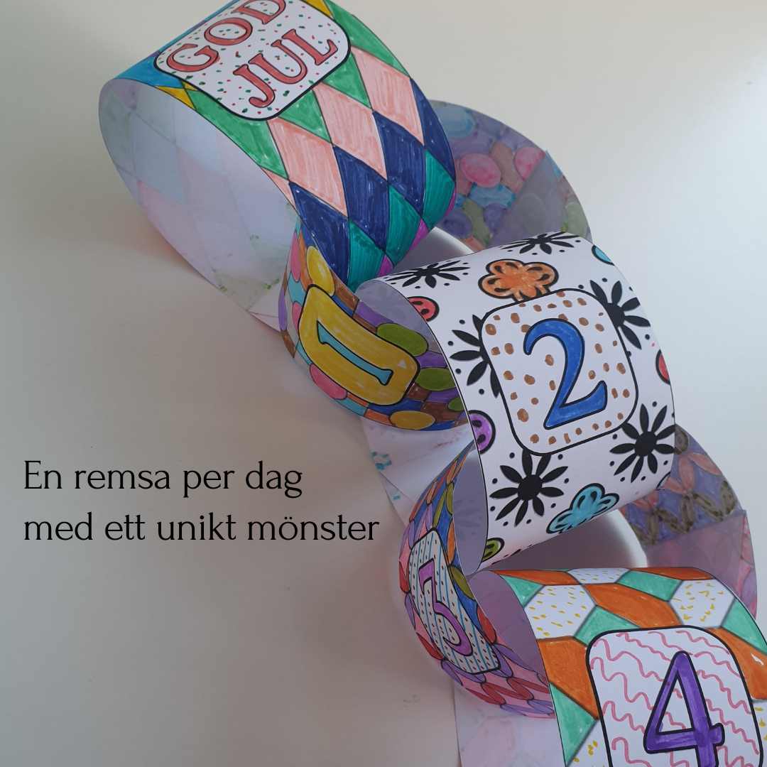 - Nedräkningen startar: Från den 1 december färglägger du en remsa och lägger till i kedjan