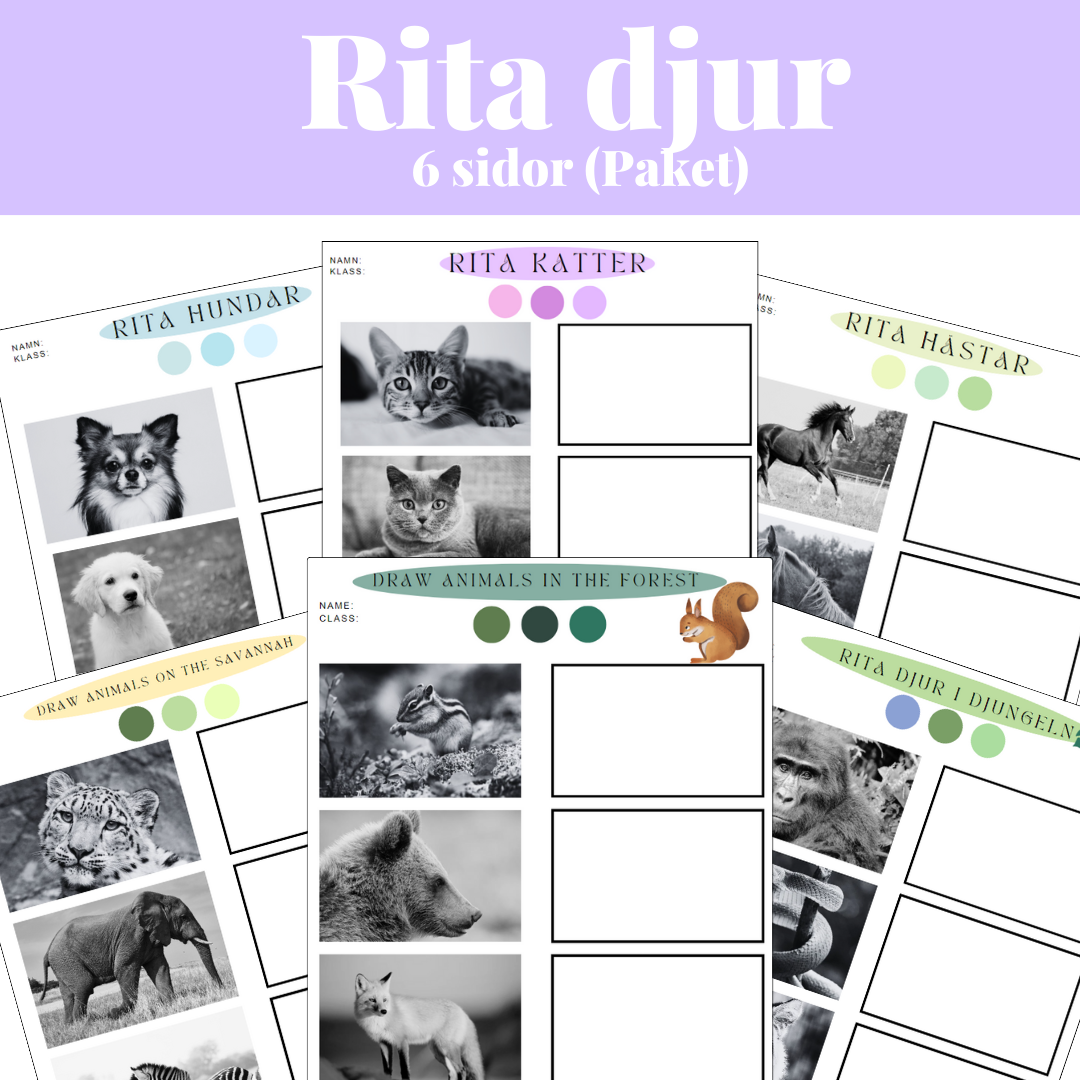 Ge dina elever möjligheten att öva och förbättra sina skiss- och teckningsfärdigheter med denna övning! Varje sida har fyra djur i mindre rutor, vilket ger eleverna en mångfaldig uppsättning utmaningar och möjligheter att utveckla sina färdigheter. Detta är en perfekt övning under bildlektionen men fungerar lika bra som en pausaktivitet i klassrummet.