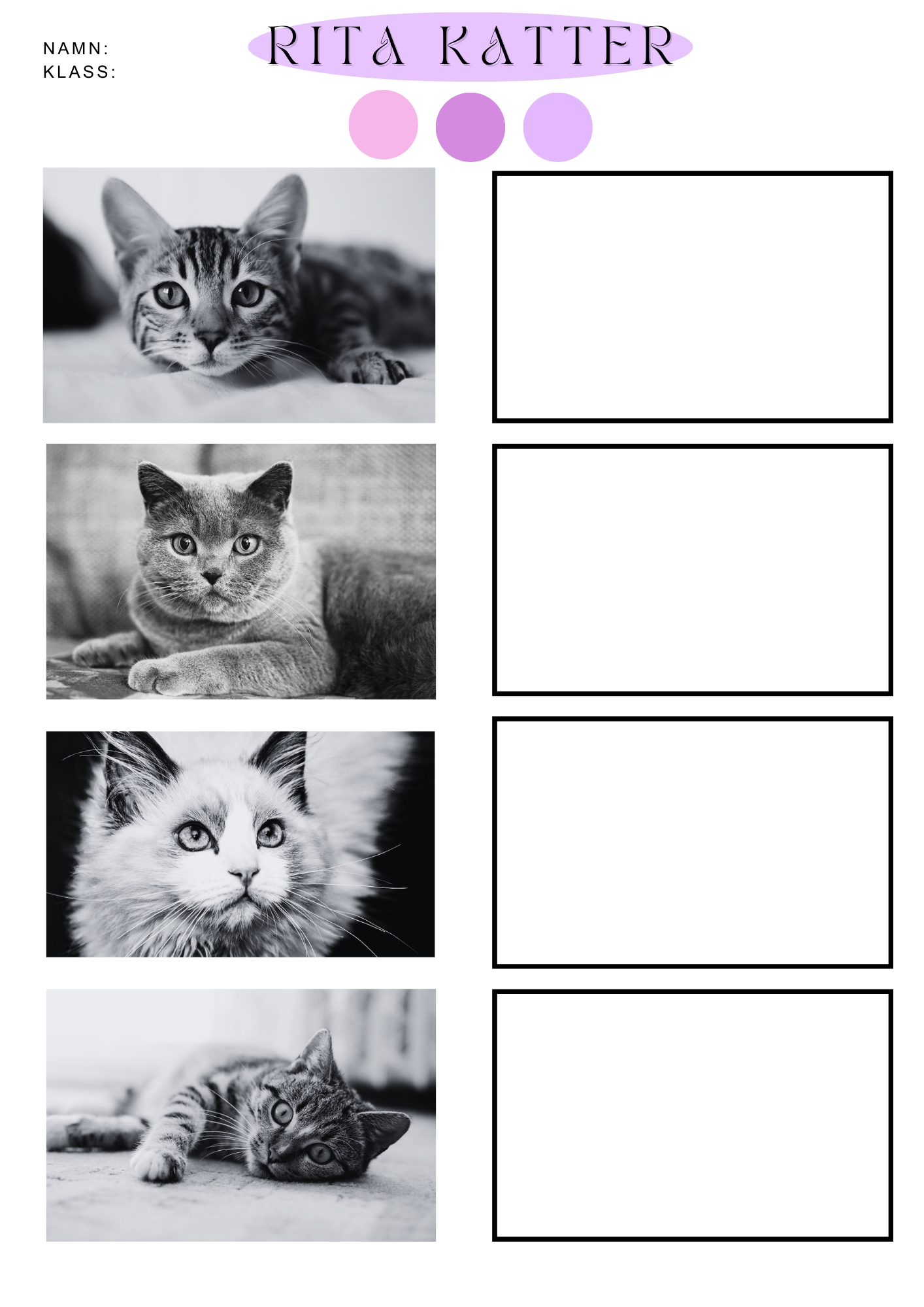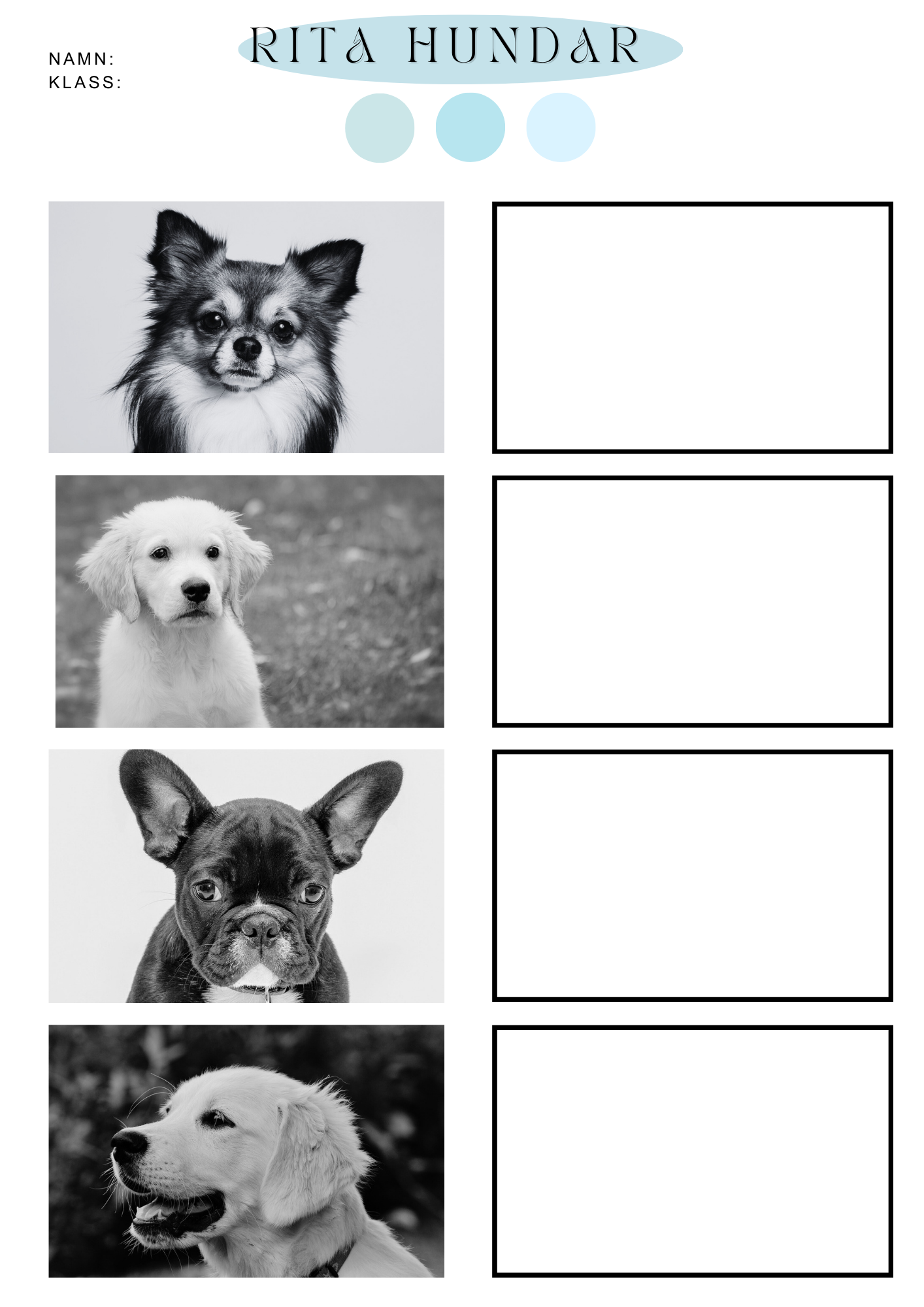 - Mellanrumsformer: De mindre rutorna gör det möjligt för eleverna att fokusera på detaljer och precision, samtidigt som de övar på att skissa och teckna av djuren. Eleverna kan med hjälp av rutorna lättare använda sig av mellanrumsformer när det tecknar för definiera proportioner, riktning och förhållandet mellan olika delar av motivet.