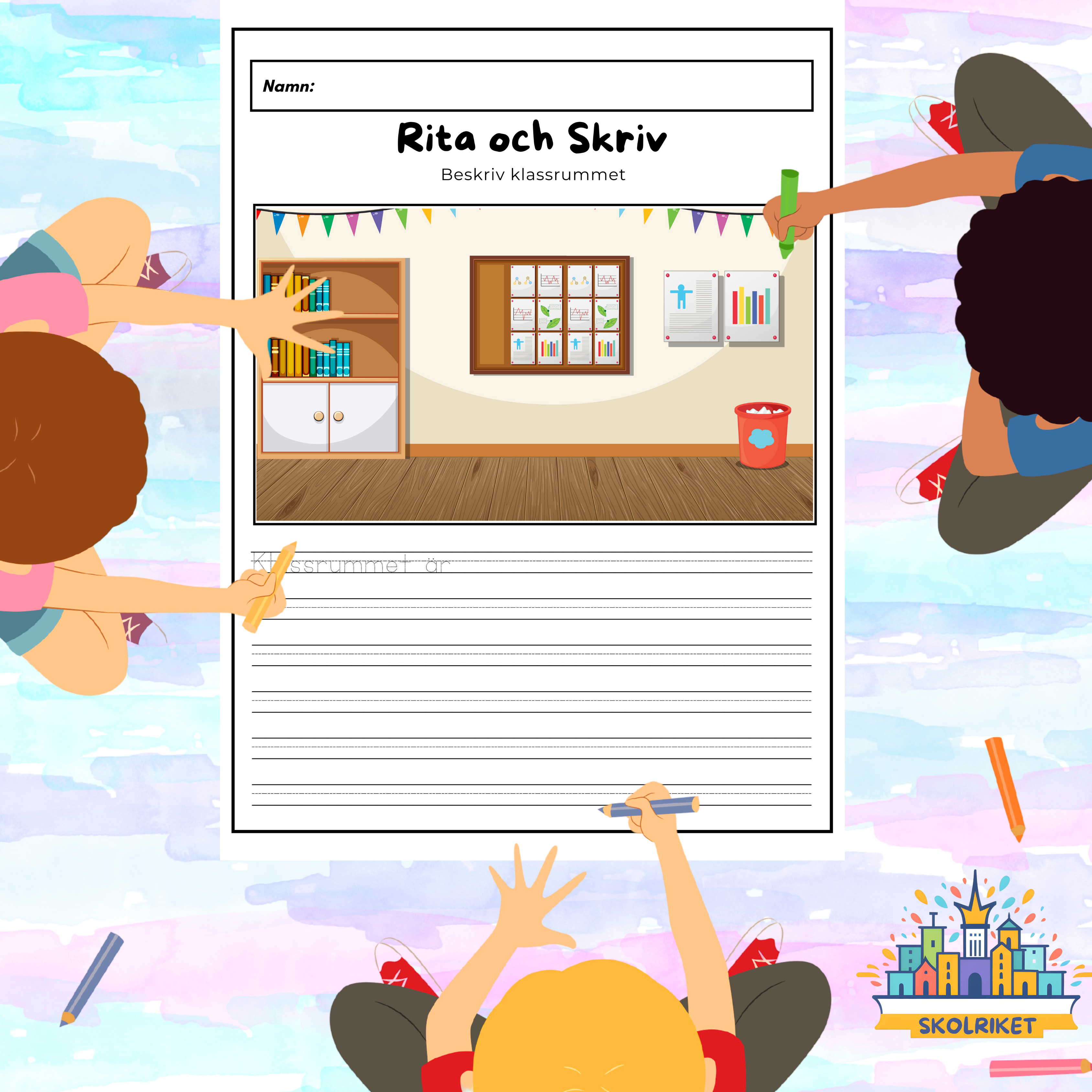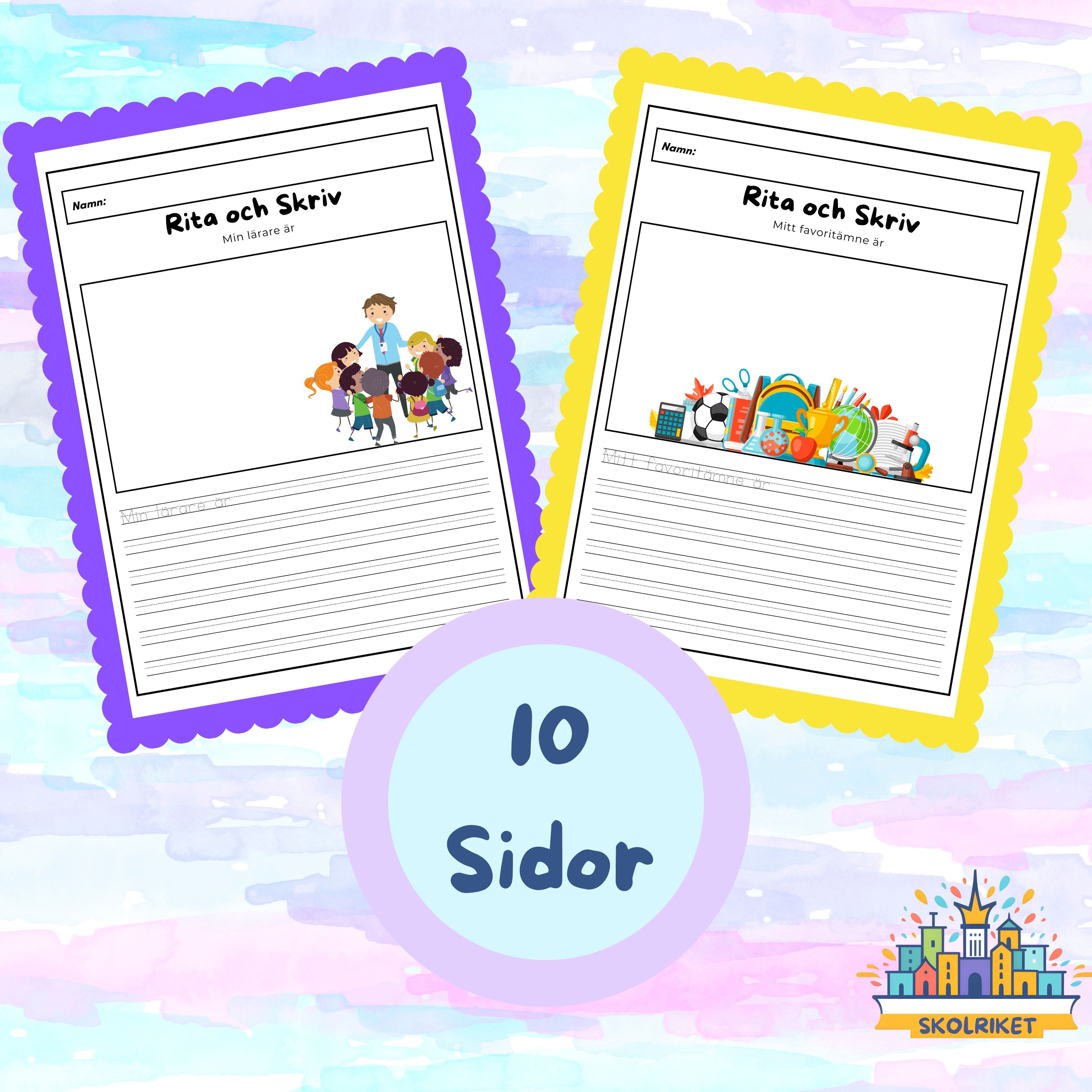 10 sidor med bilder att fortsätta rita och skriva text till.