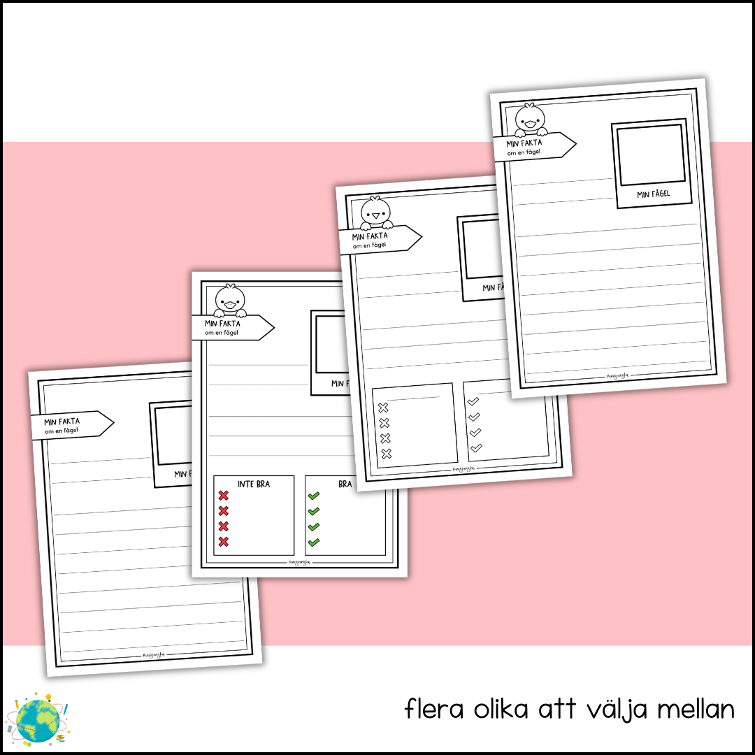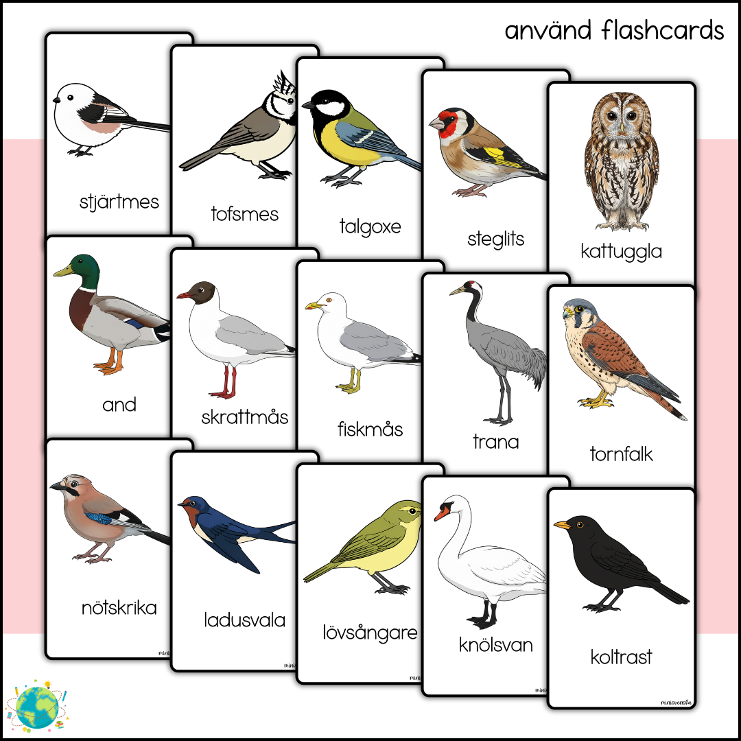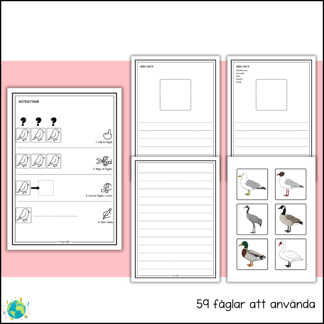 – välj själv vilka fåglar eleverna ska arbeta med - Klipp-och-klistra-uppgifter där eleverna: