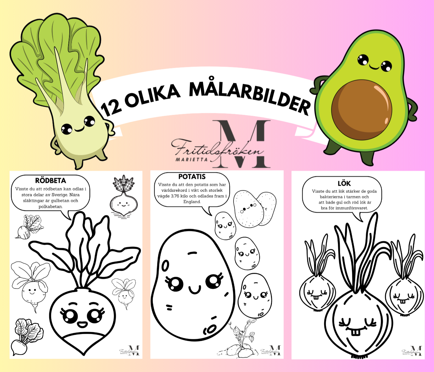 Arbetshäfte: roliga grönsaker- Målarbilder med intressanta fakta.