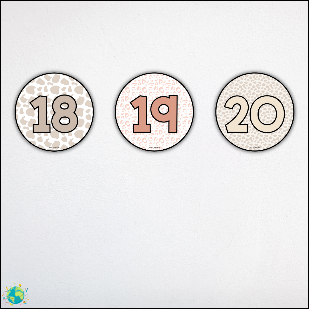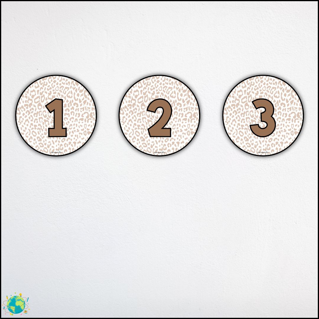 Dekorera med runda posters med safari-tema. Siffror 0-20 2 alternativ PDF: High quality