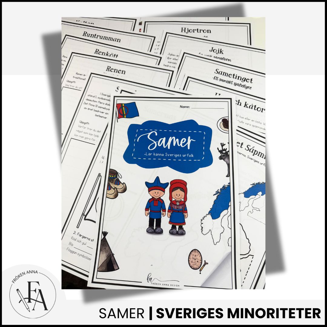 Det här omfattande arbetsmaterialet är designat för att ge elever en djupgående förståelse för samernas rika kultur, traditioner och historia. Med varierade och interaktiva övningar får eleverna möjlighet att lära sig genom att läsa, skriva, rita och reflektera.