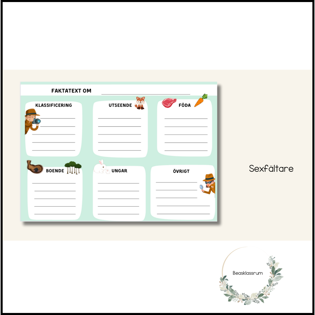 Sexfältare till faktatext om djur.