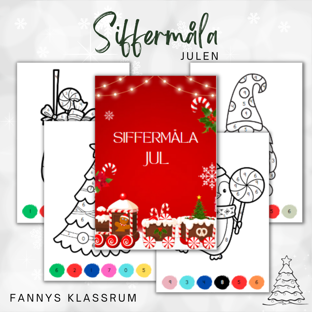 Häfte med 10 olika siffermåla med jultema. Går använda som helt häfte eller enskilda arbetsblad.
