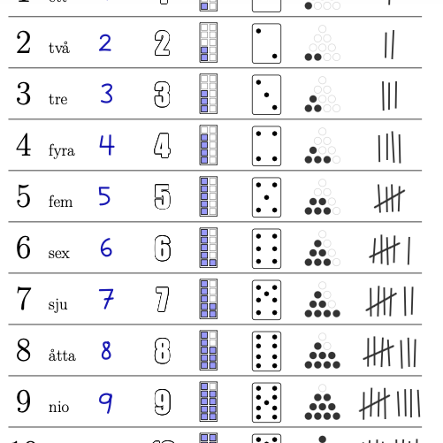 Matematiska uttrycksformer Eleven får möta och växla mellan olika sätt att representera tal – från konkreta figurer till abstrakta symboler och tallinjen.