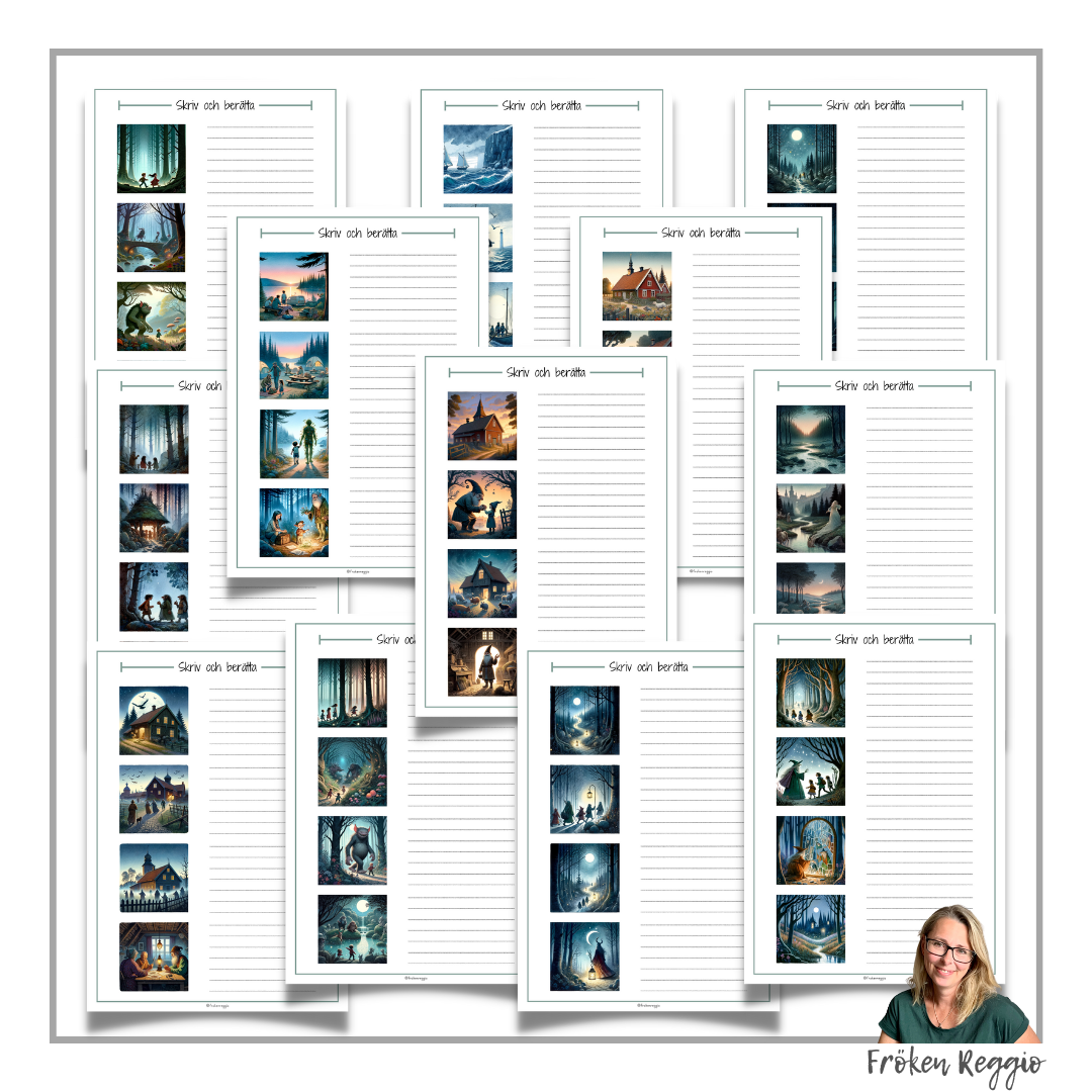 12 arbetsblad med sekvensbilder. Skriv ord, meningar eller en berättelse till bilderna.