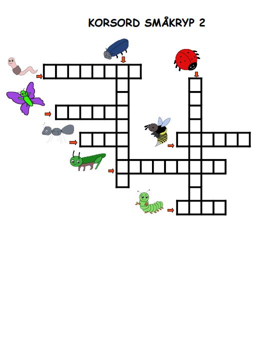 2 korsord med Insekter och Småkryp, ett på svenska och ett på engelska. Ett blad med bara korsordet , ett blad med korsordet och en ordbank. Egen grafik Facit inkluderat. pdf-format