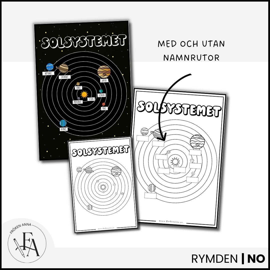 Ett enkelt och pedagogiskt material som hjälper eleverna att lära sig planeternas namn, utseende och ordning i solsystemet.