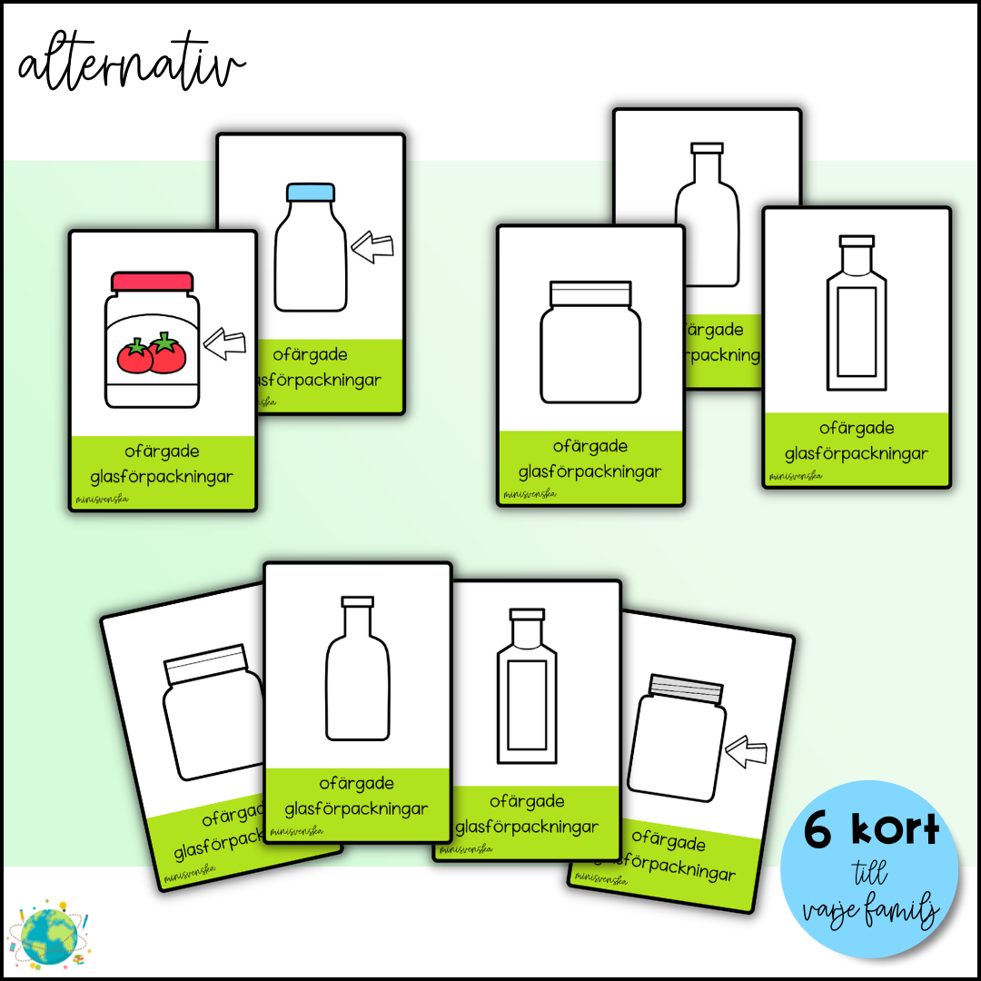 Spela familjen med temat sopor. I denna version finns det 10 familjer att samla på och till varje familj finns det 6 kort. Innehåll: 60 kort 4 olika baksidor spelregler Laminera för längre hållbarhet. PDF: High quality
