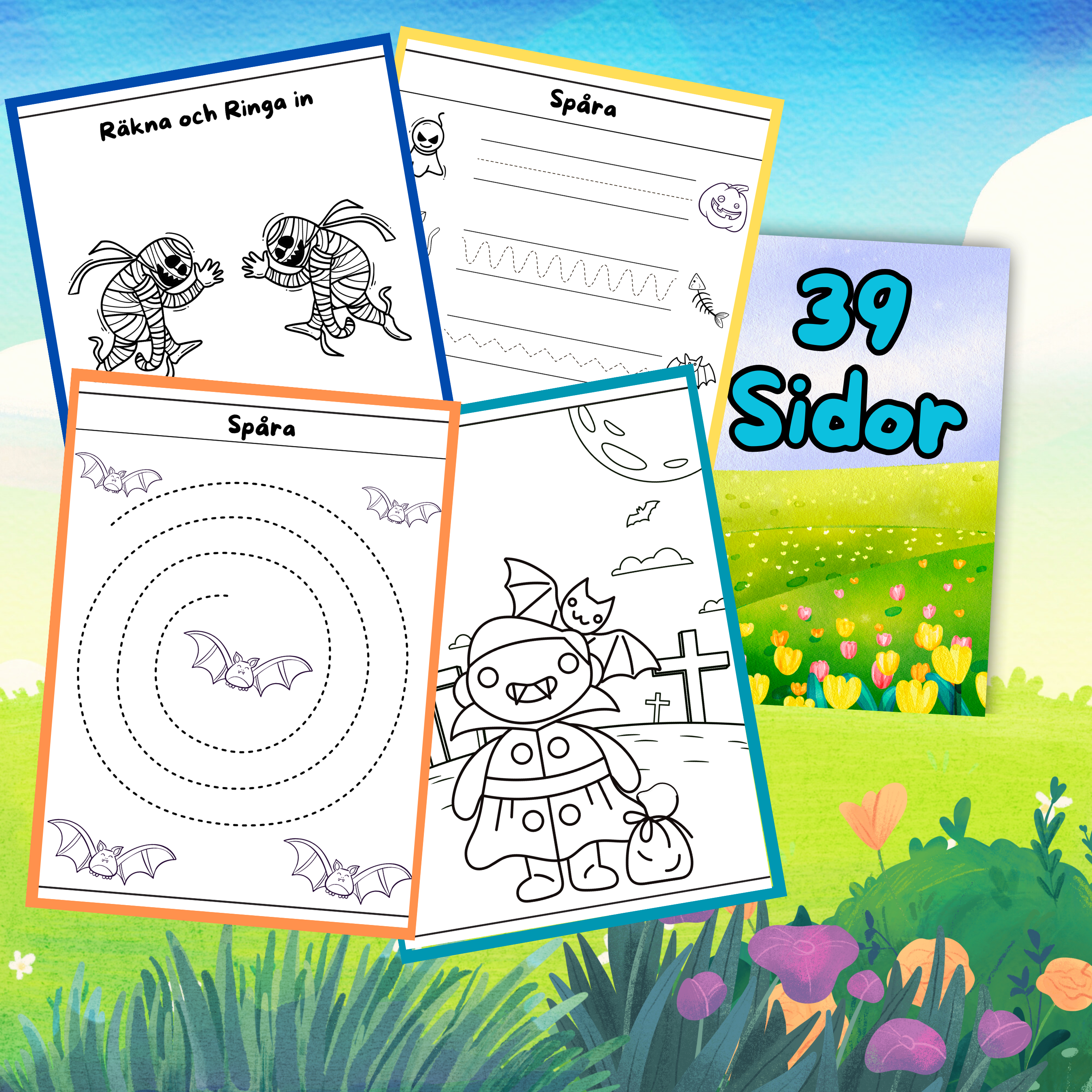 39 sidor att spåra, räkna och måla med temat Halloween.