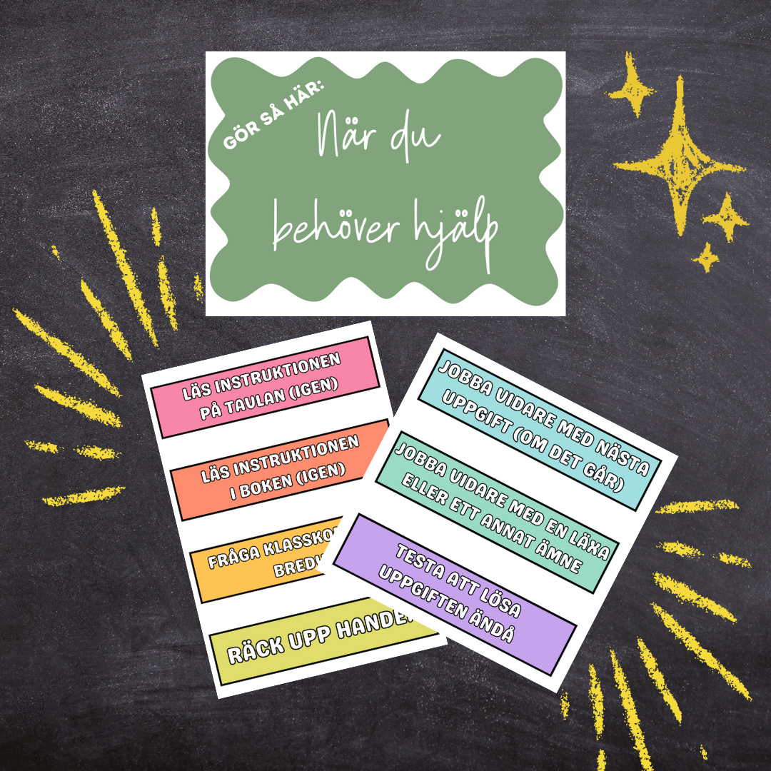 Stödstruktur att sätta upp i klassrummet. Påminner eleverna om vad man kan göra medan man väntar på hjälp.