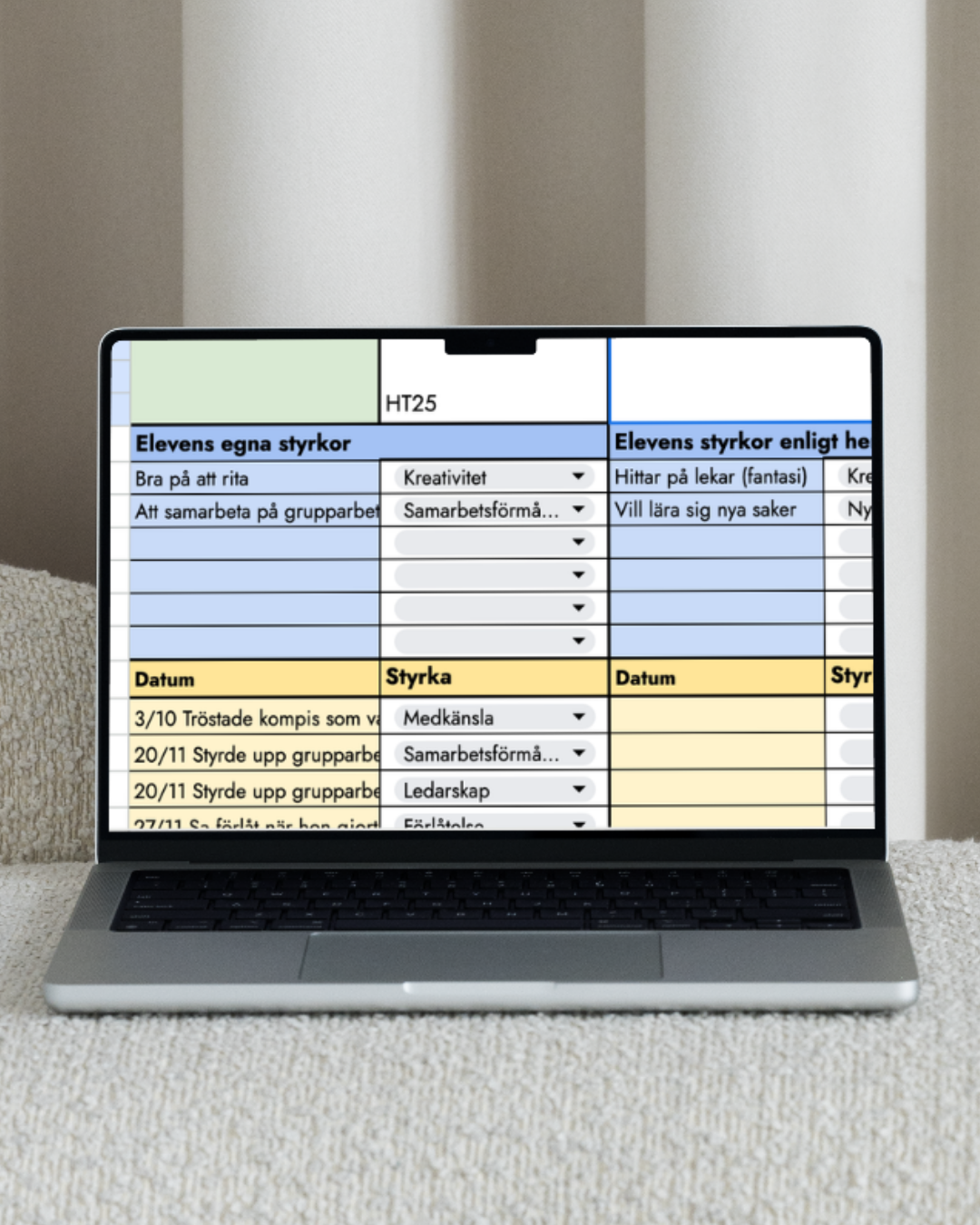 För varje elev duplicerar du bladet och byter namn på varje blad till din elevs namn.