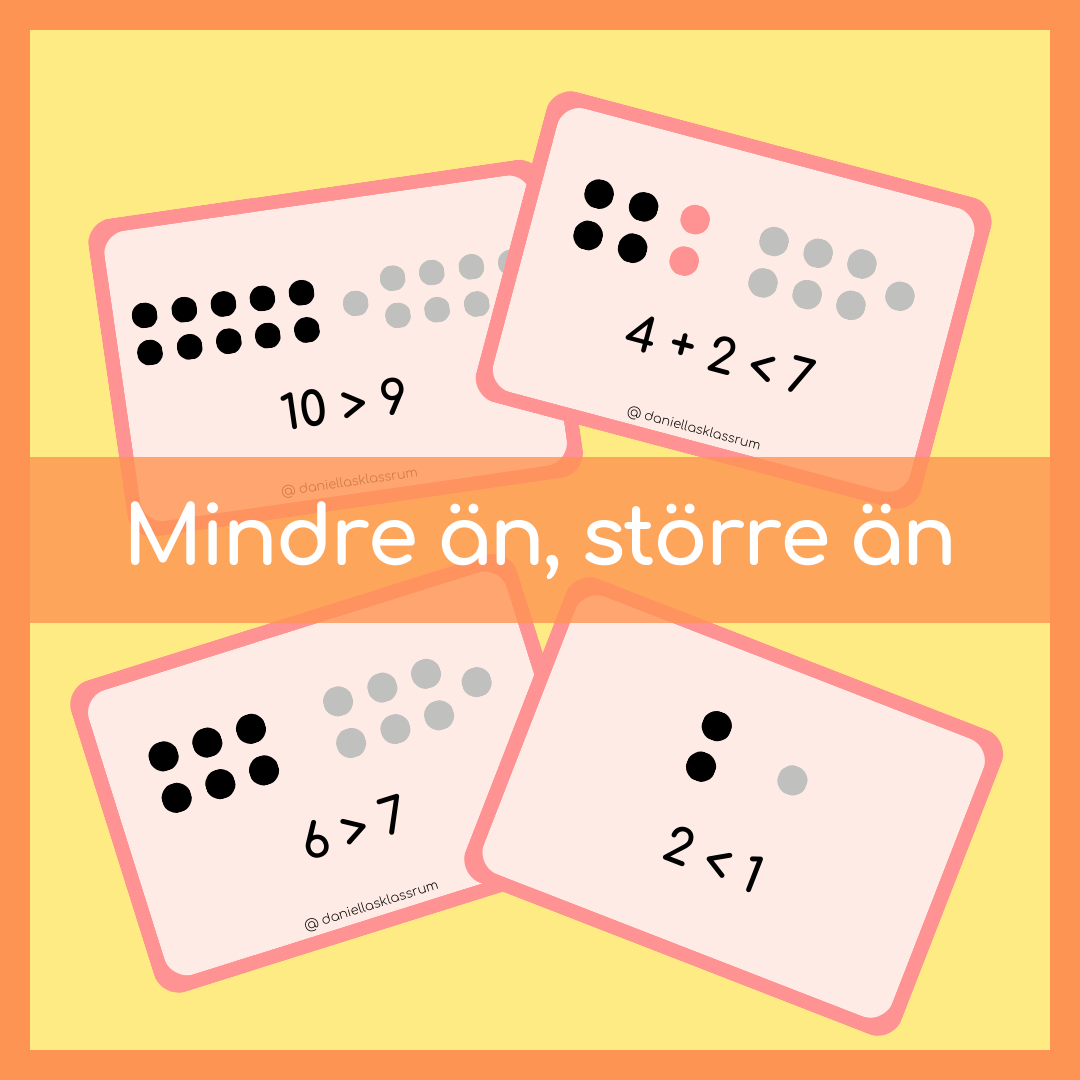 - 16 uttryck med mindre än och större än tecknet som är sanna, 2 st varianter. 8 st med bildstöd, 8 st utan bildstöd.