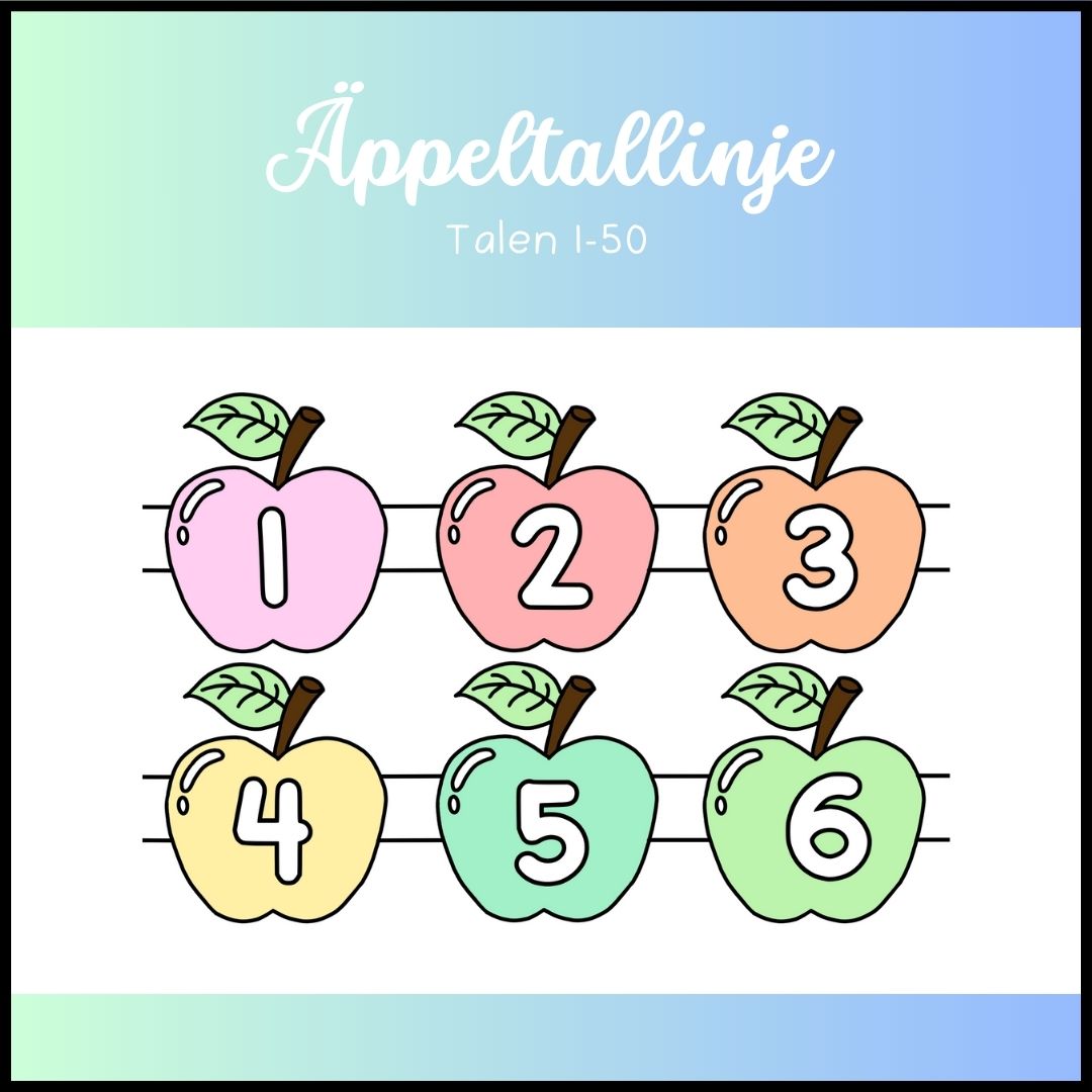Gör matematiken både visuell och lekfull med en tallinje med äpplen 1–50! Varje tal visas på ett eget färgglatt äpple, vilket gör det lättare för eleverna att räkna, jämföra tal och förstå talens ordning.