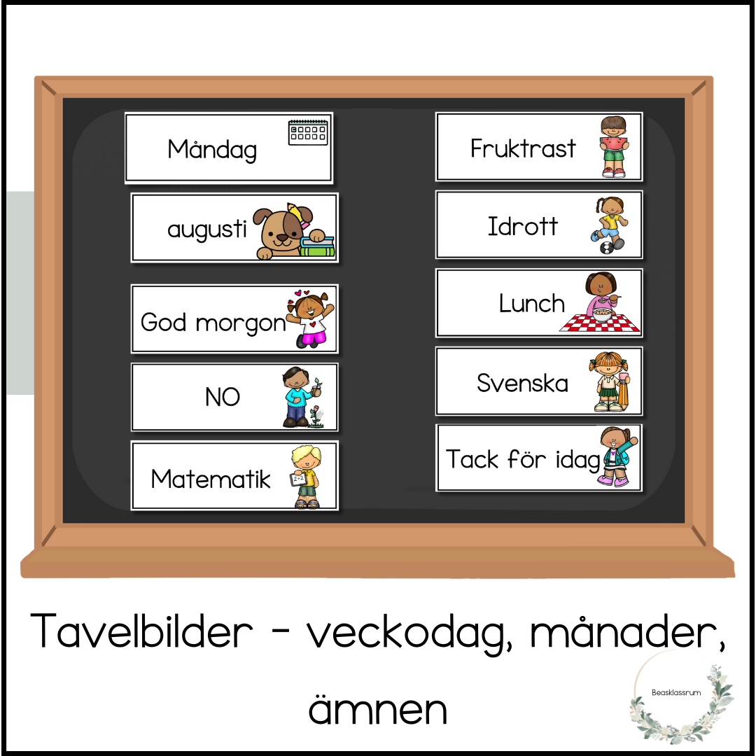 Paketet innehåller veckodagarna och månader samt ämnen