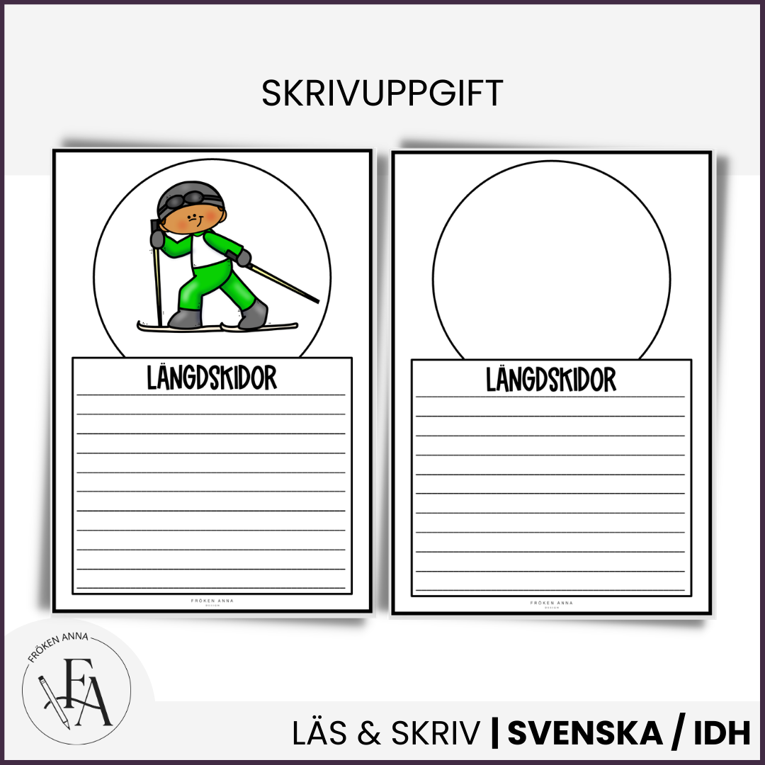 Ett litet temapaket om Vasaoppet: Faktablad: läs - lär & färglägg. Skriv med fördel ut i A3. Skrivuppgift längdskidor VENN - jämför skidor och skridskor