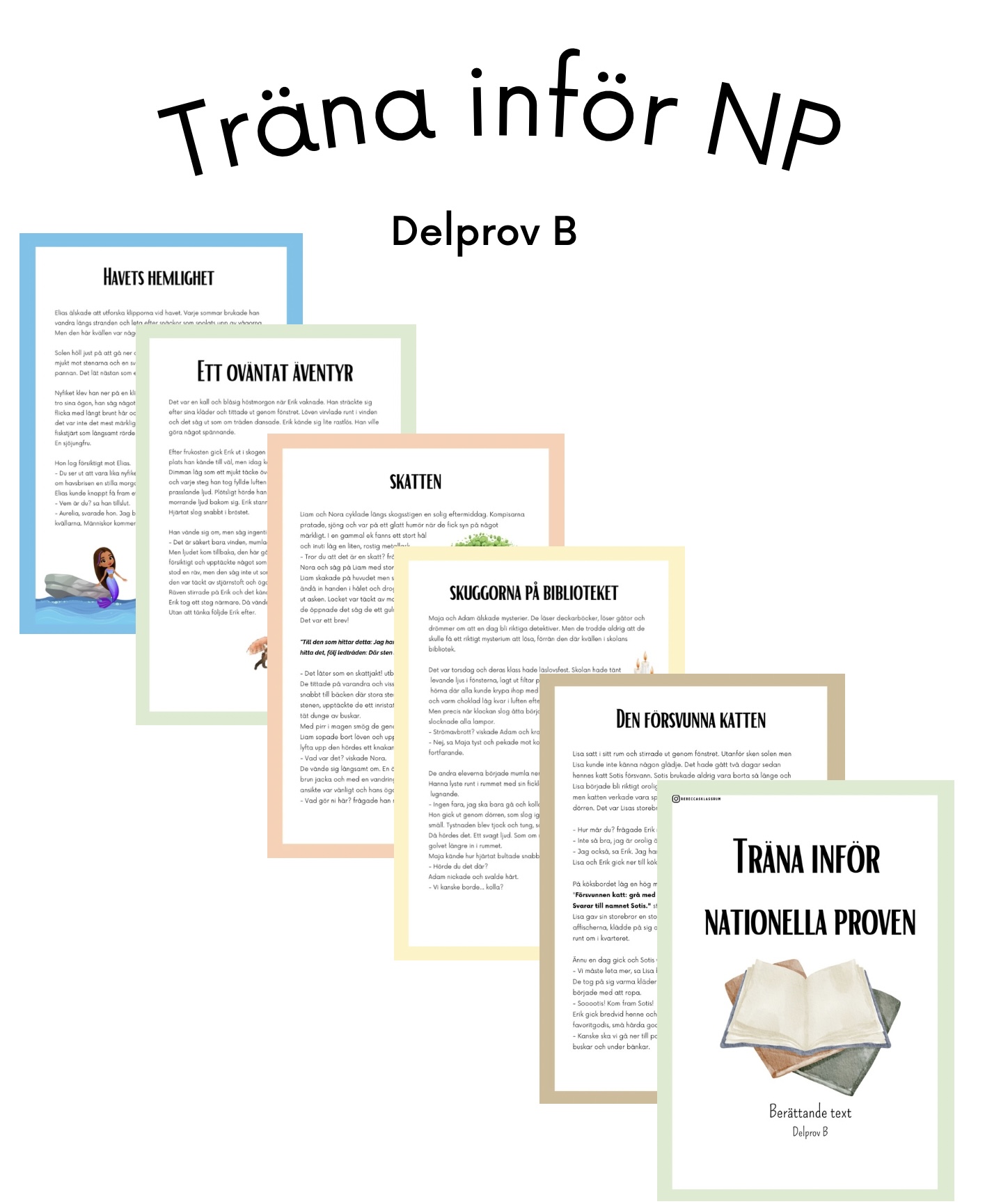 Träna på att läsa berättande texter och svara på frågor inför NP. Häftet består av fem berättande texter. Varje berättande text har tillhörande läsförståelsefrågor, både flervalsfrågor och fritextfrågor.