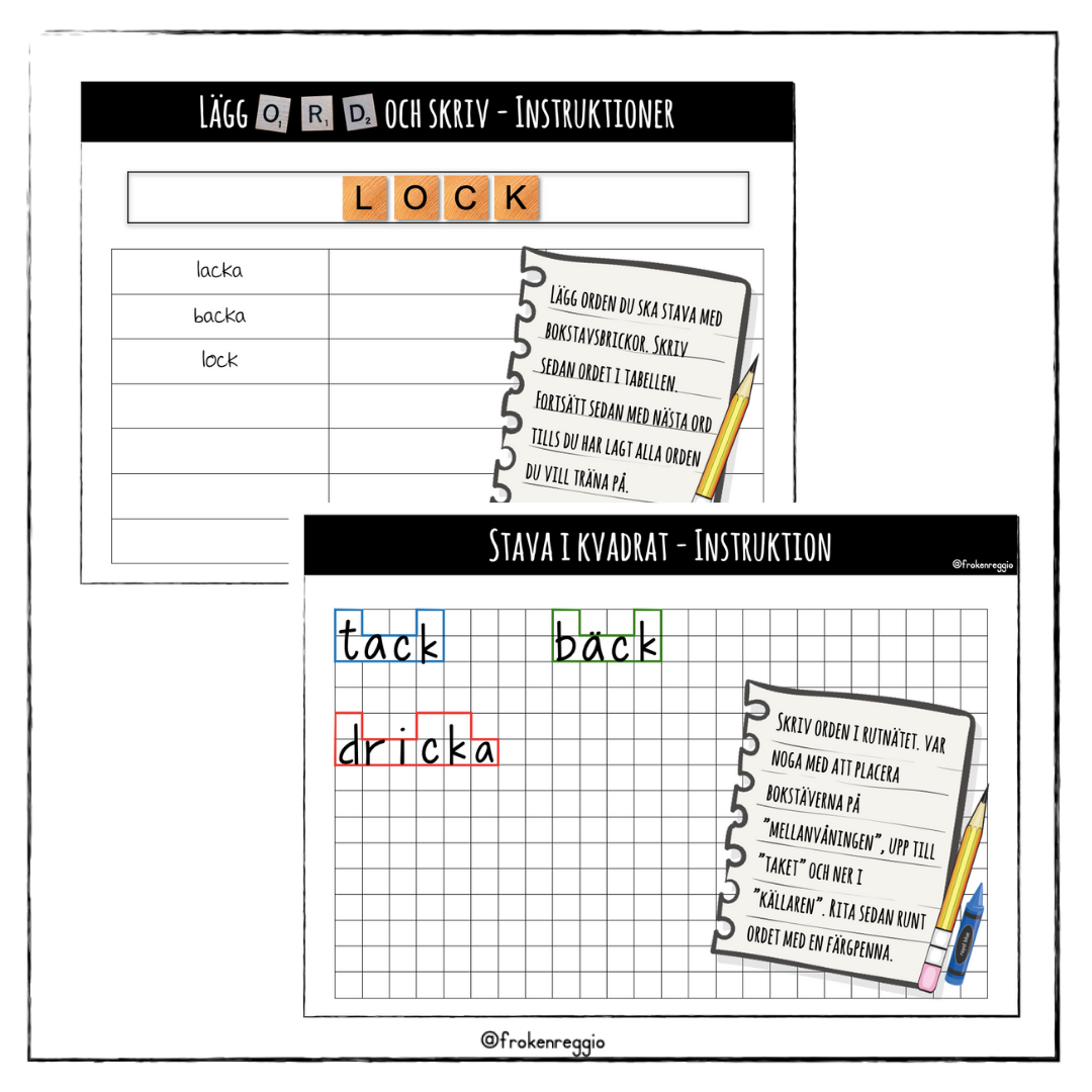 För att det ska bli lite mer lustfyllt med stavning har jag satt ihop ett material där eleverna får träna på flera olika sätt. Tanken är att vissa delar gör alla och vissa delar är valfria.
